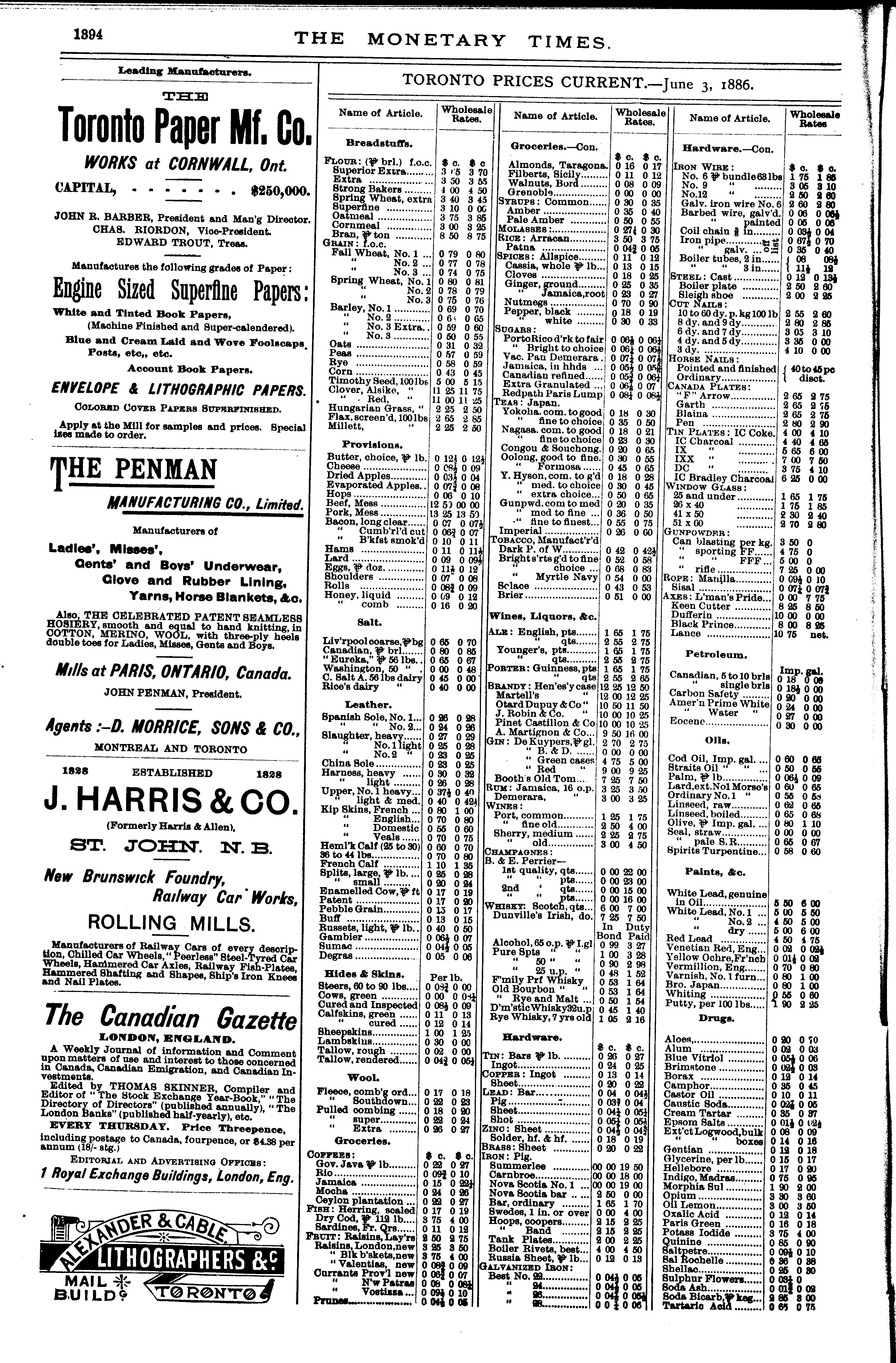 The monetary times, trade review and insurance chronicle : [Vol. 19, no. 49 (June 4, 1886)]