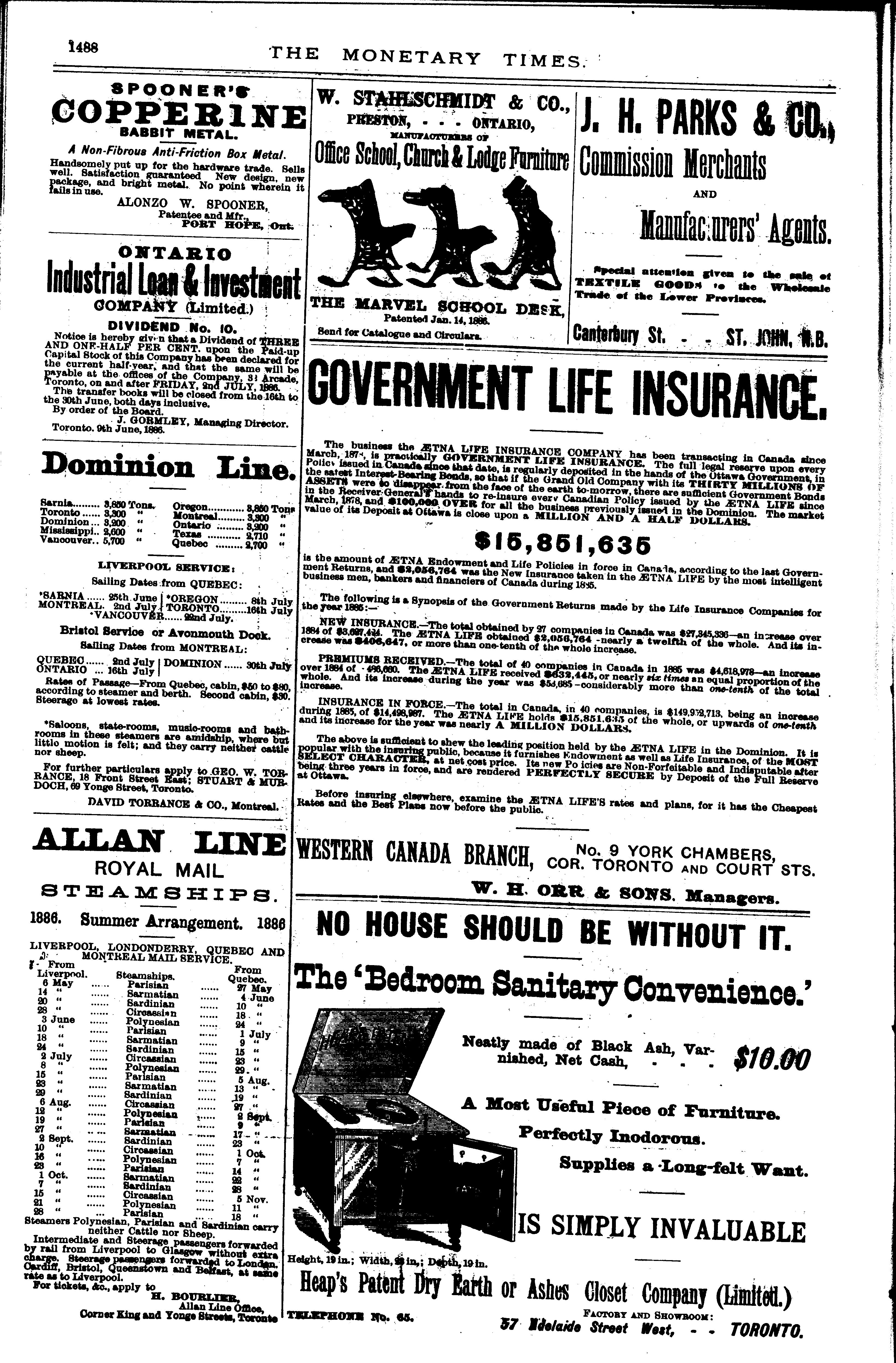 The monetary times, trade review and insurance chronicle : [Vol. 19, no. 52 (June 25, 1886)]