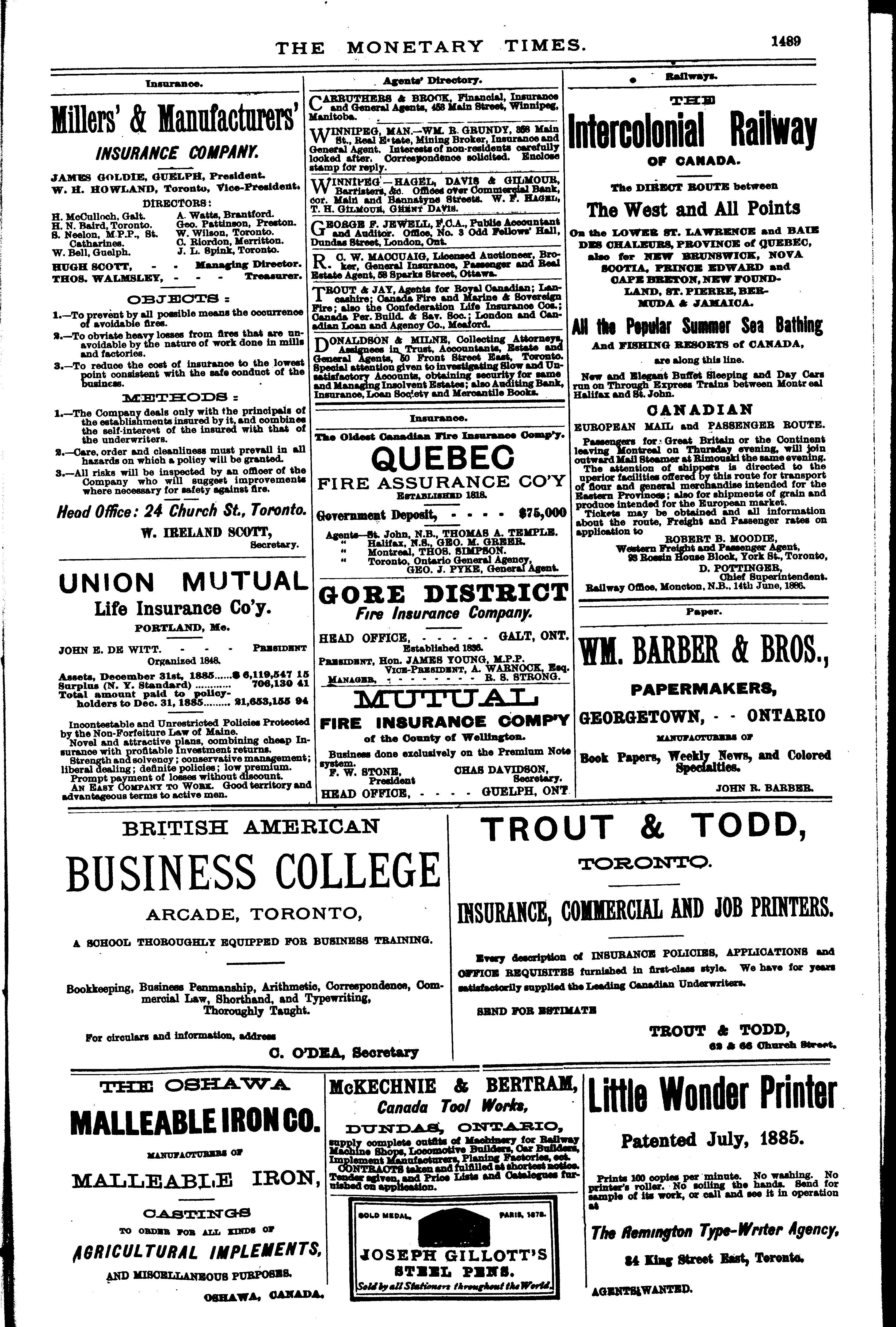 The monetary times, trade review and insurance chronicle : [Vol. 19, no. 52 (June 25, 1886)]
