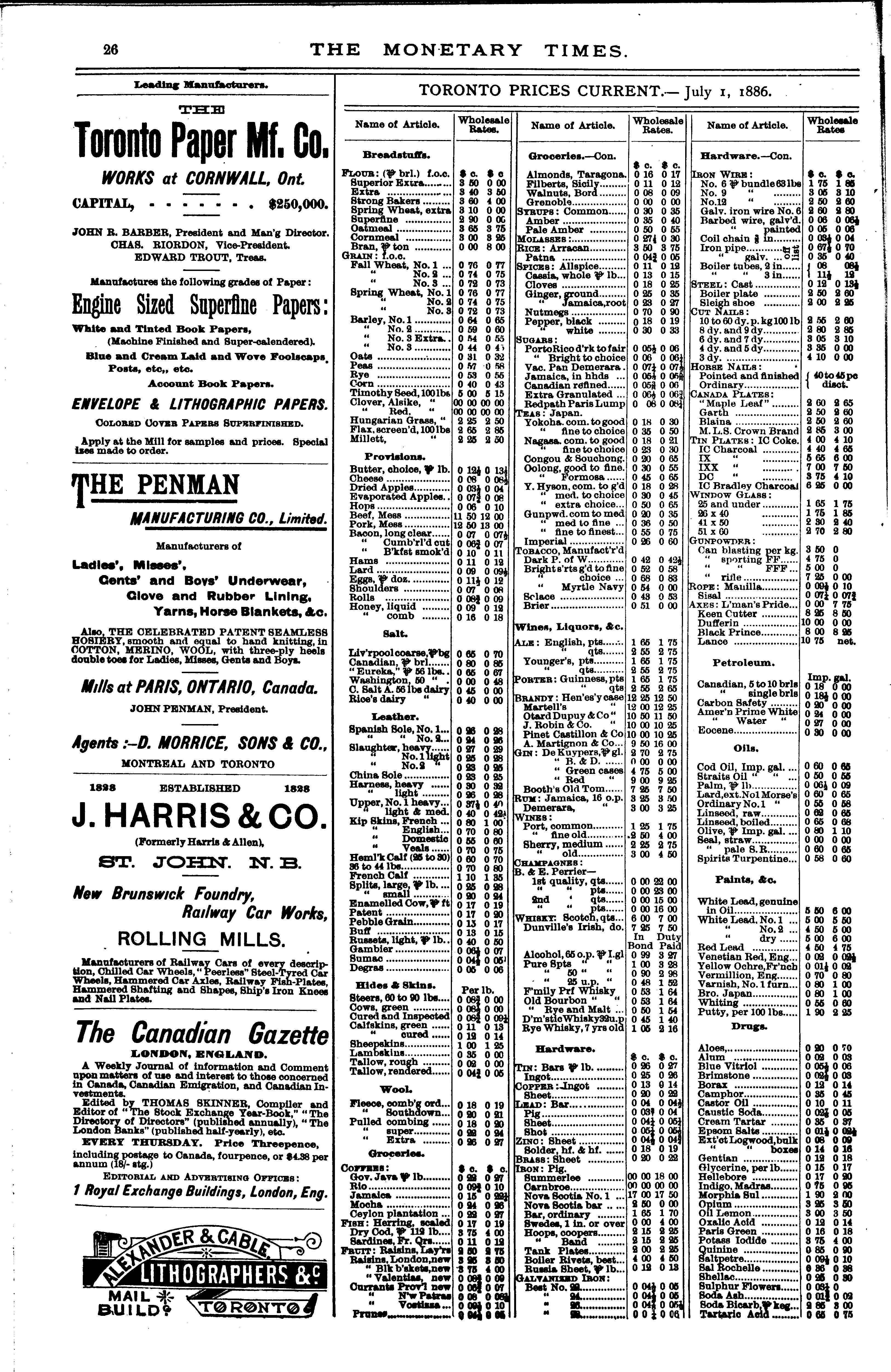 The monetary times, trade review and insurance chronicle : [Vol. 20, no. 1] (July 2, 1886)]
