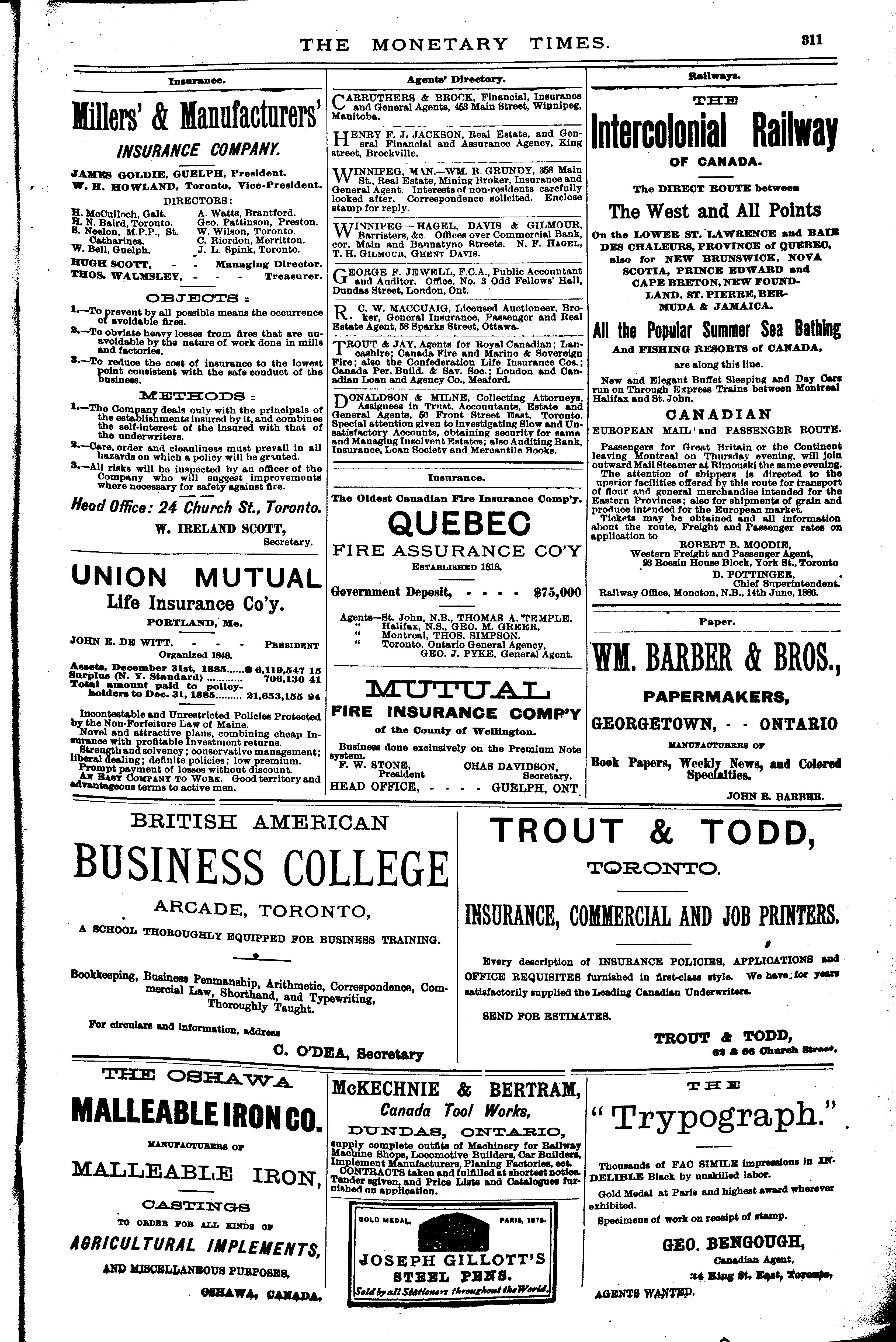 The monetary times, trade review and insurance chronicle : [Vol. 20, no. 11 (Sept. 10, 1886)]