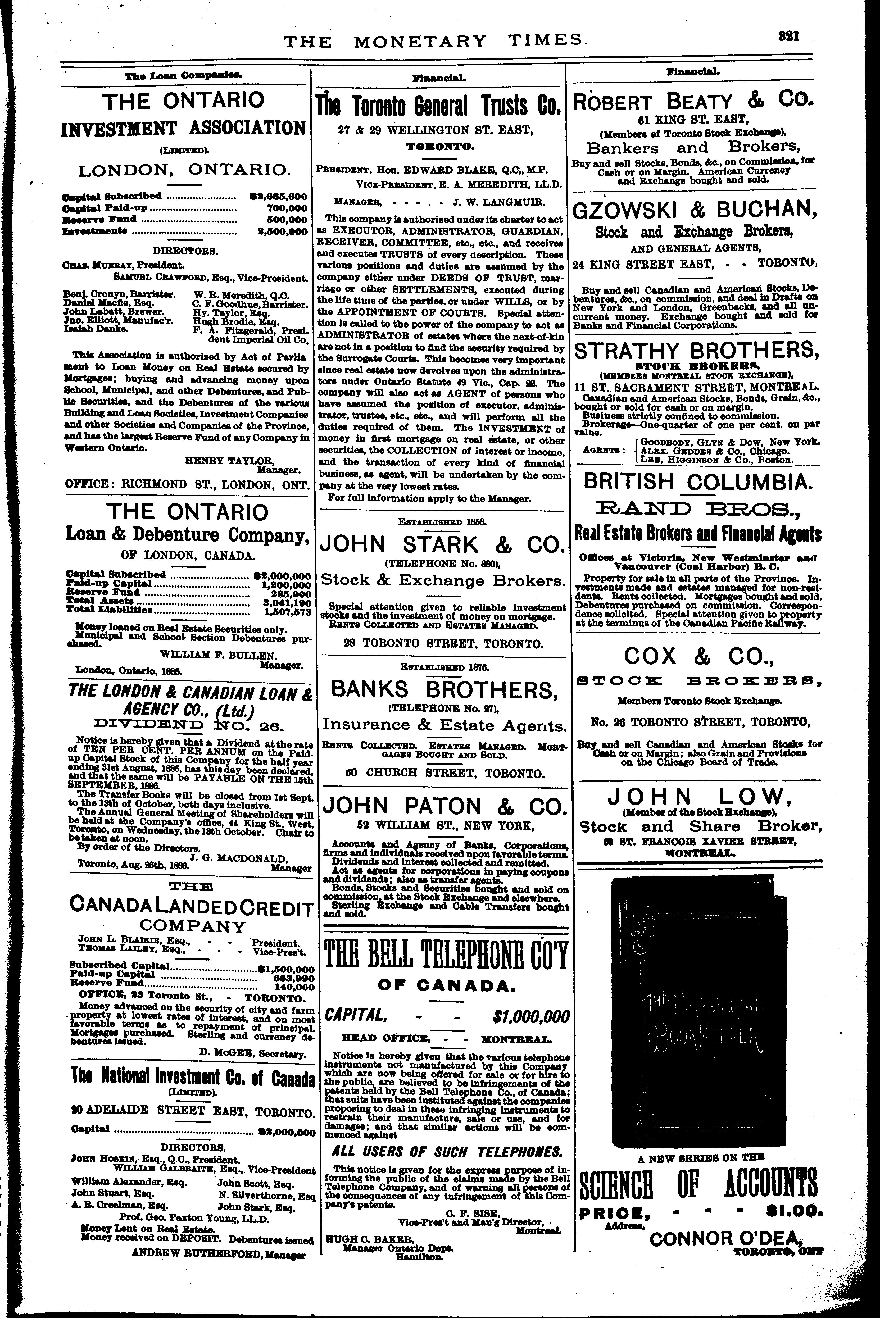 The monetary times, trade review and insurance chronicle : [Vol. 20, no. 12] (Sept. 17, 1886)]