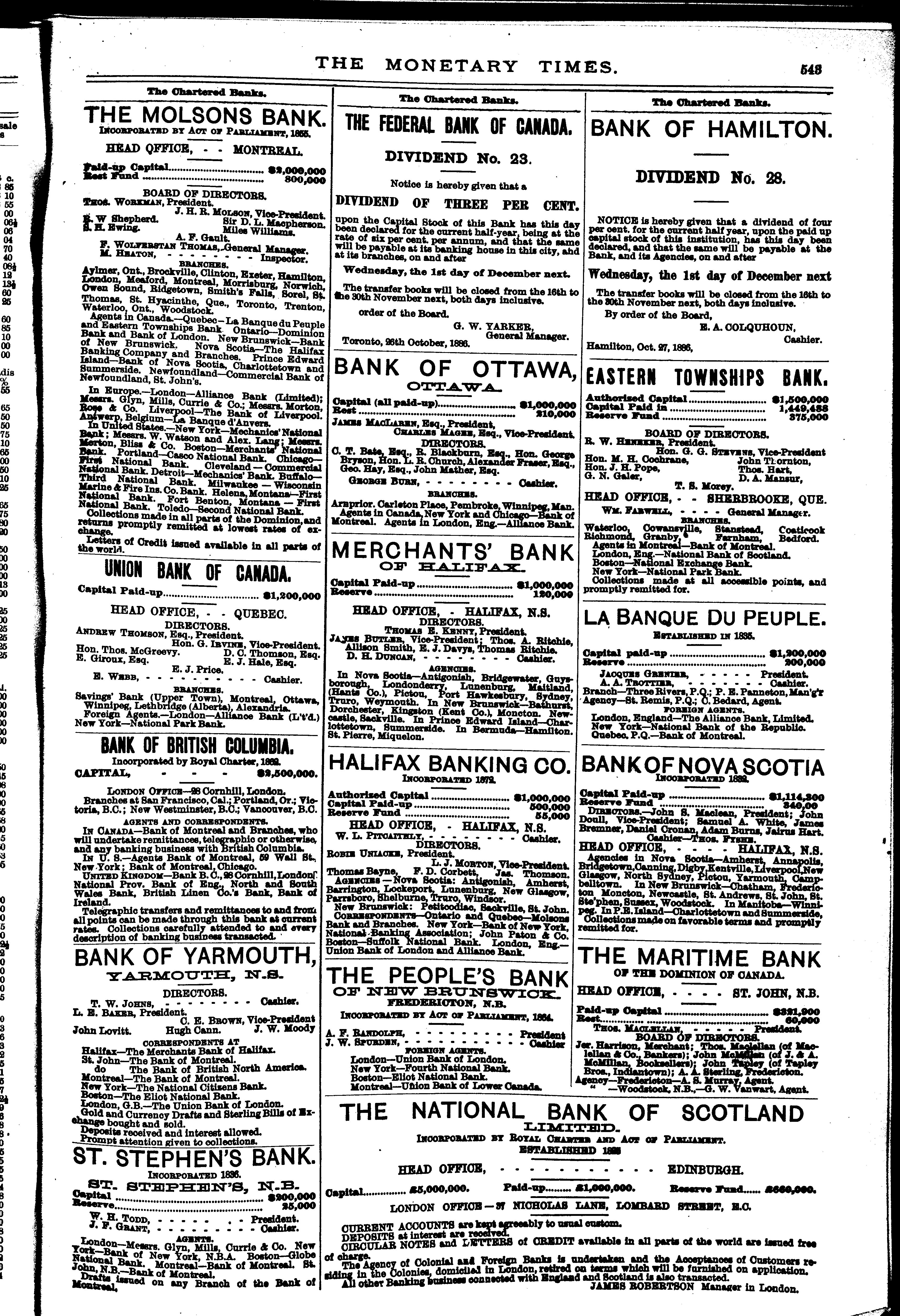 The monetary times, trade review and insurance chronicle : [Vol. 20, no. 20] (Nov. 12, 1886)]