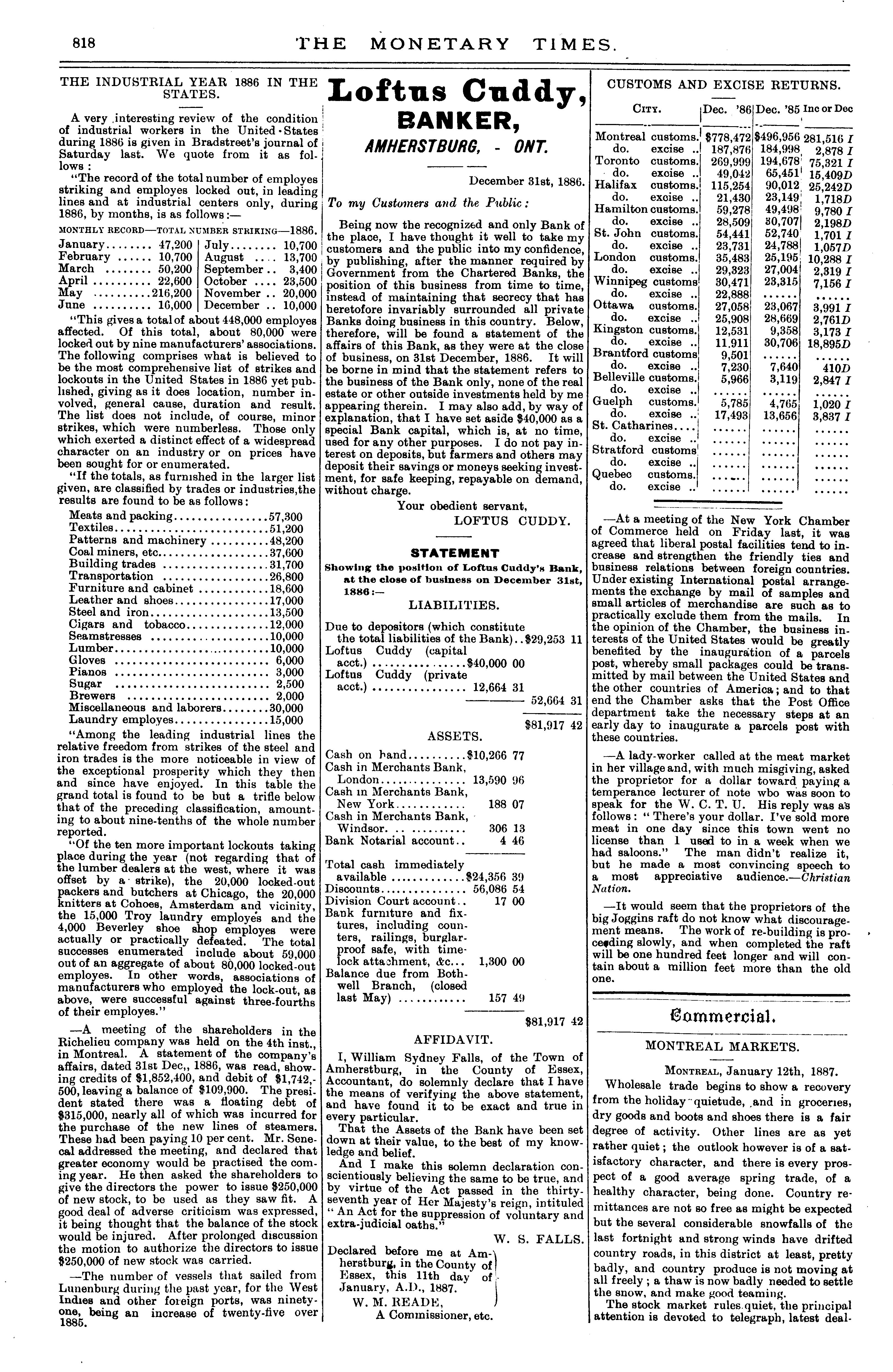 The monetary times, trade review and insurance chronicle : [Vol. 20, no. 29] (Jan. 14, 1887)]