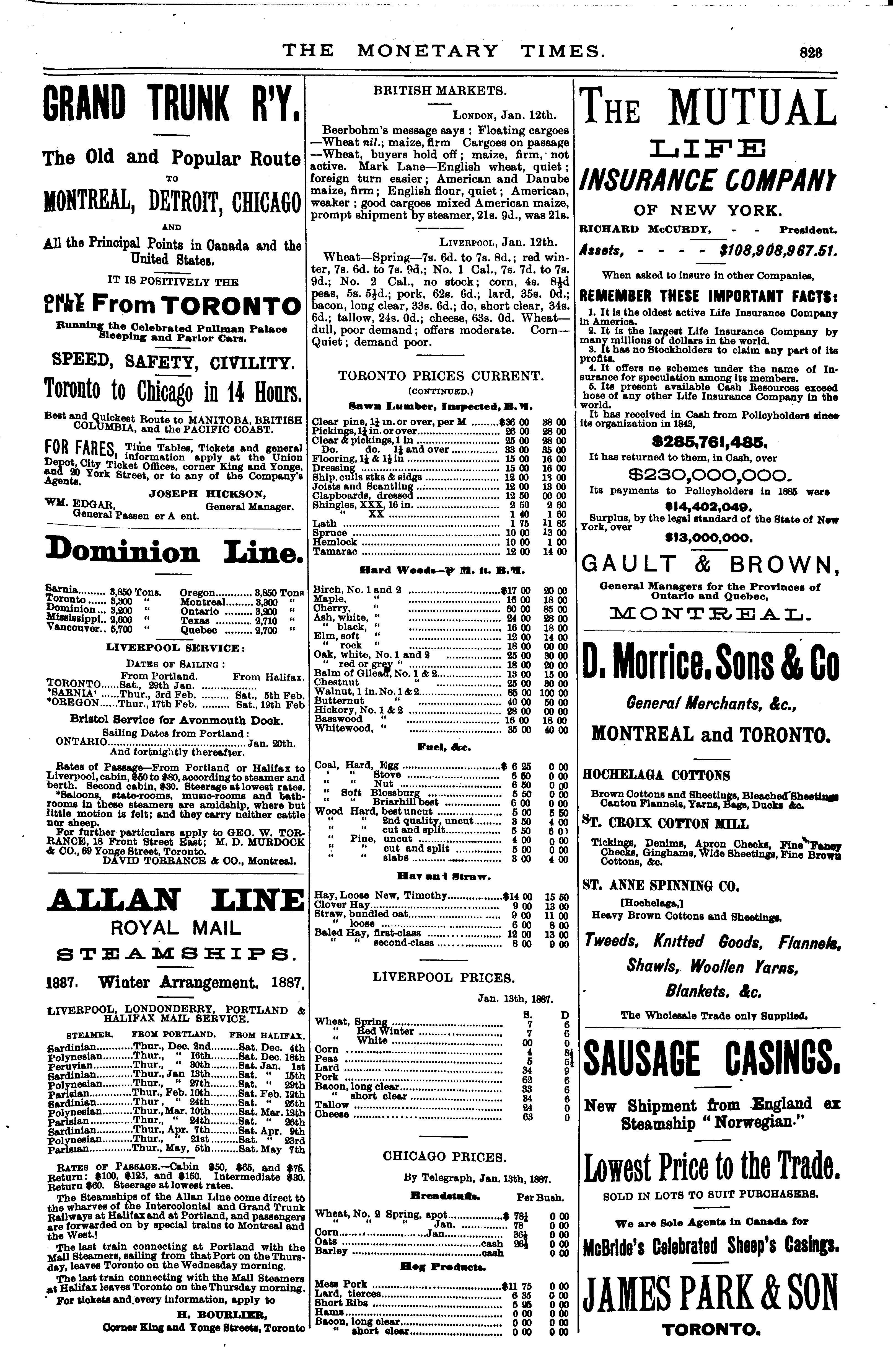 The monetary times, trade review and insurance chronicle : [Vol. 20, no. 29] (Jan. 14, 1887)]