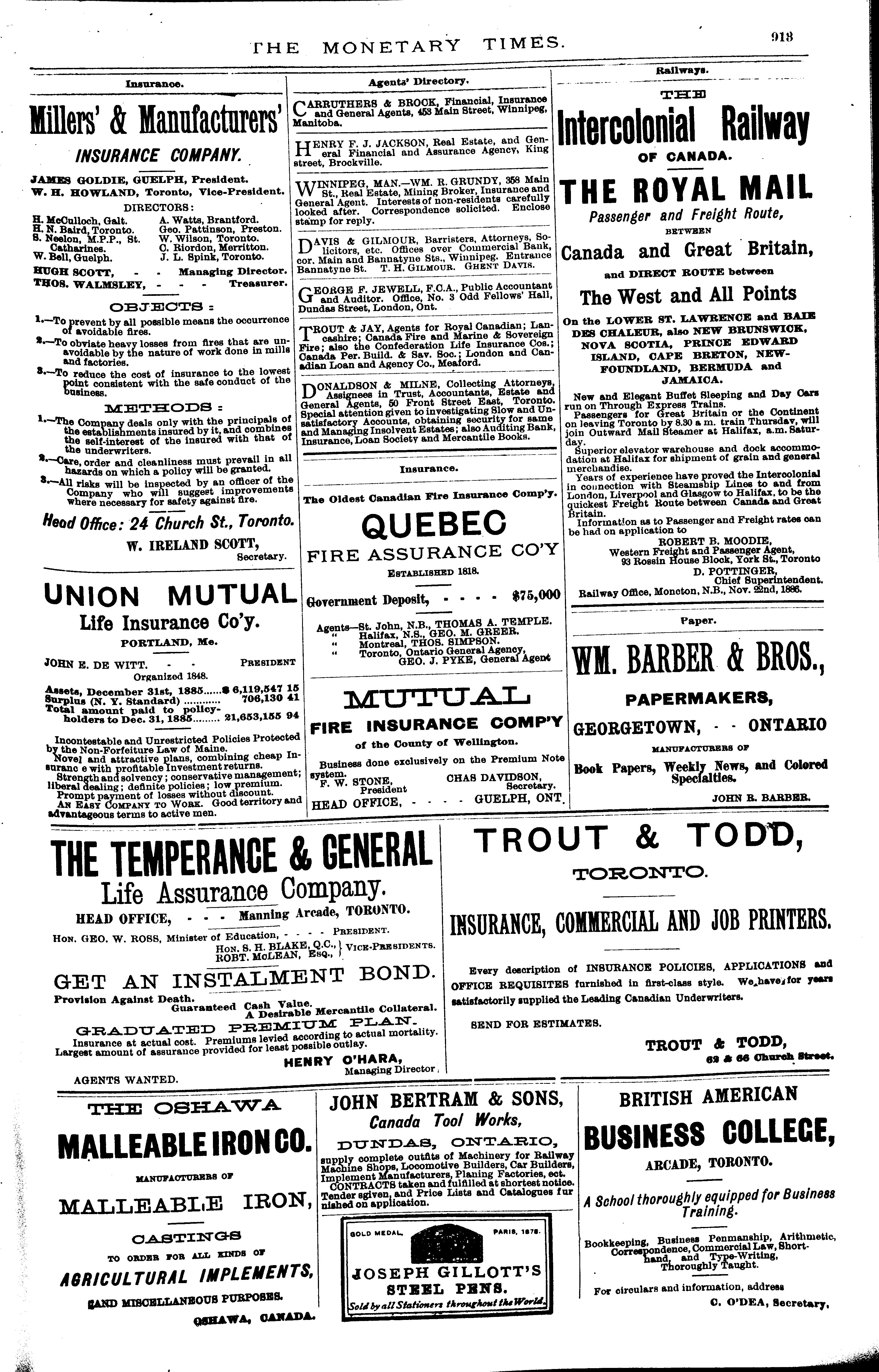 The monetary times, trade review and insurance chronicle : [Vol. 20, no. 32] (Feb. 4, 1887)]