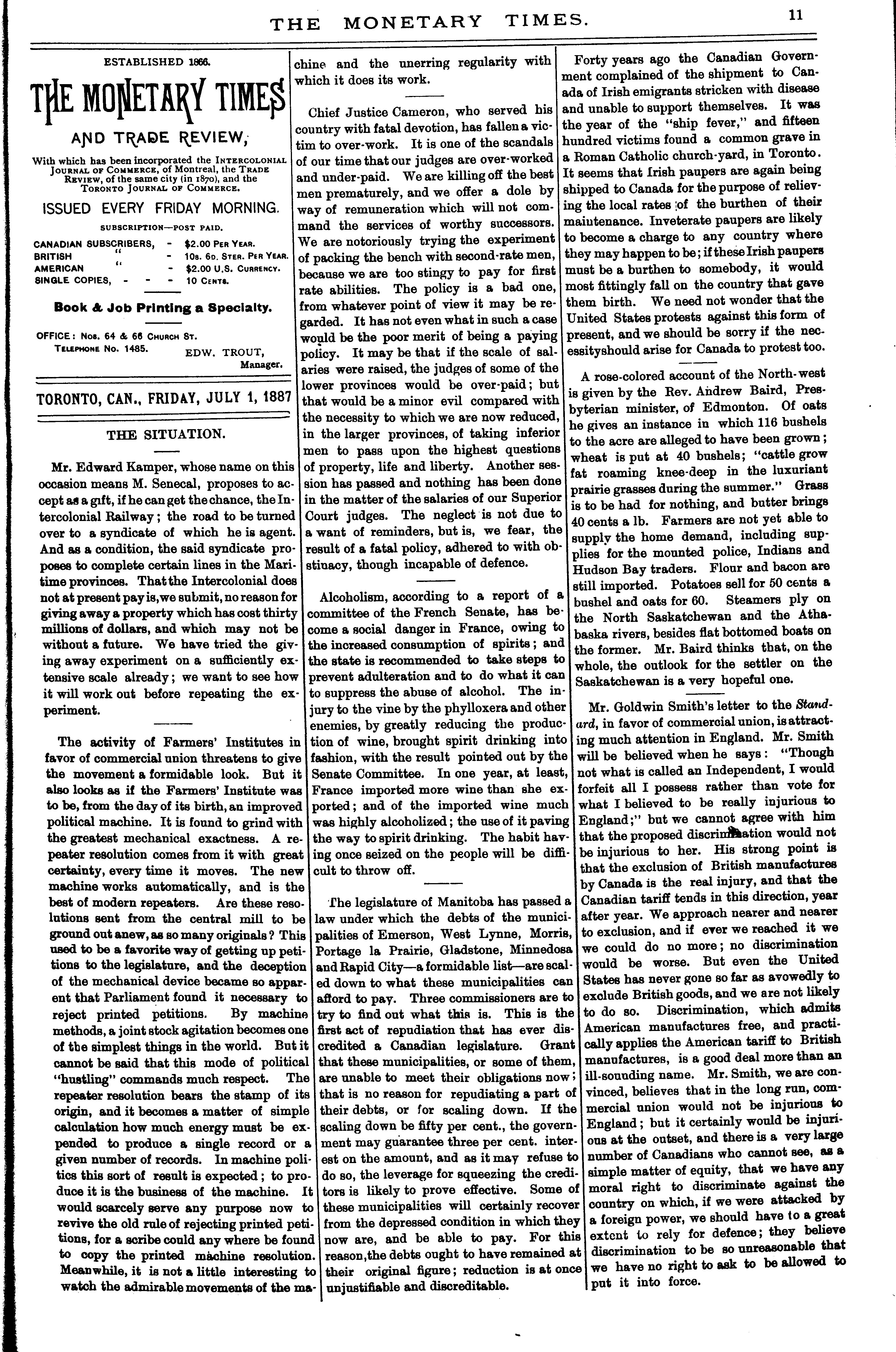 The monetary times, trade review and insurance chronicle : [Vol. 21, no. 1 (July 1, 1887)]