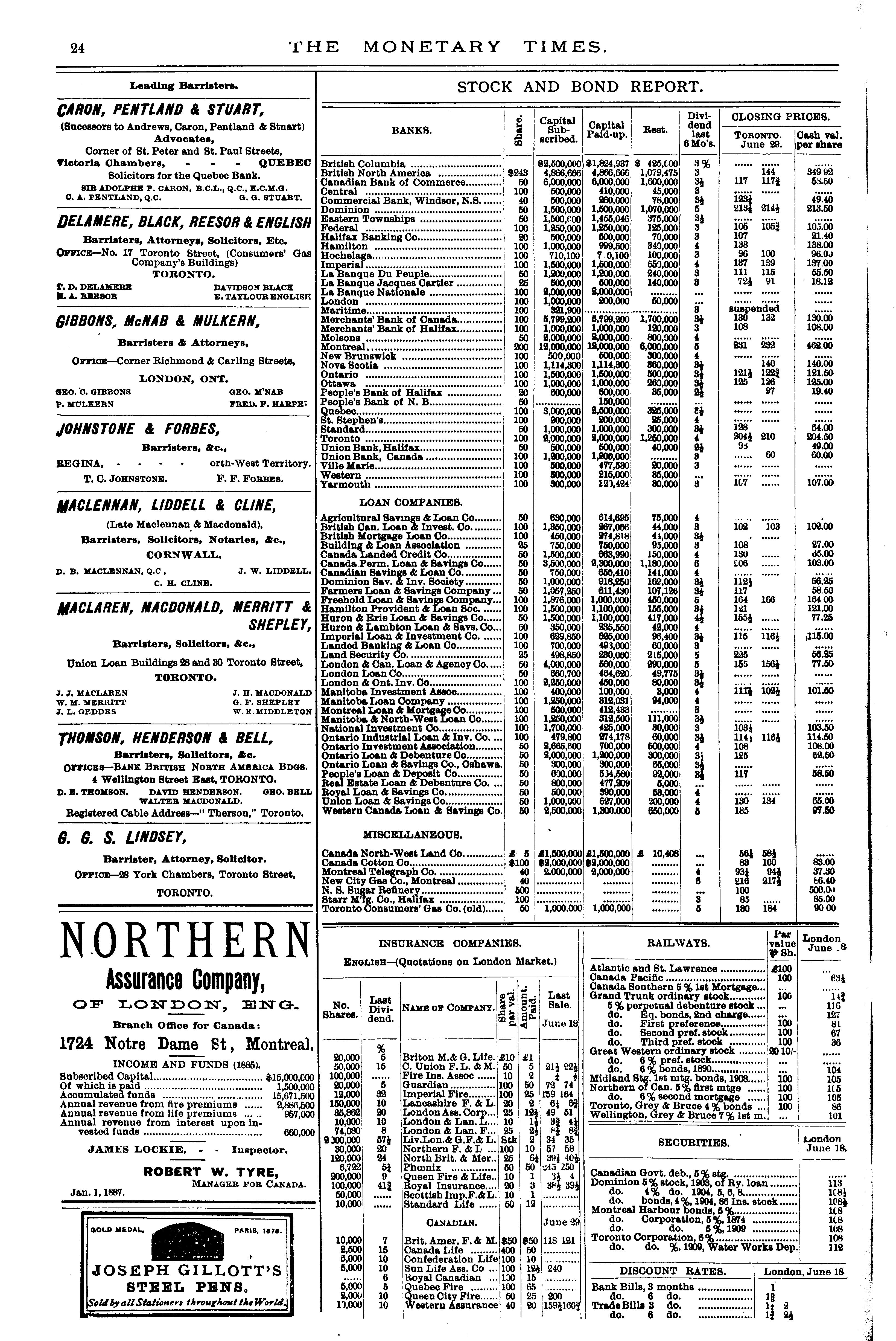 The monetary times, trade review and insurance chronicle : [Vol. 21, no. 1 (July 1, 1887)]