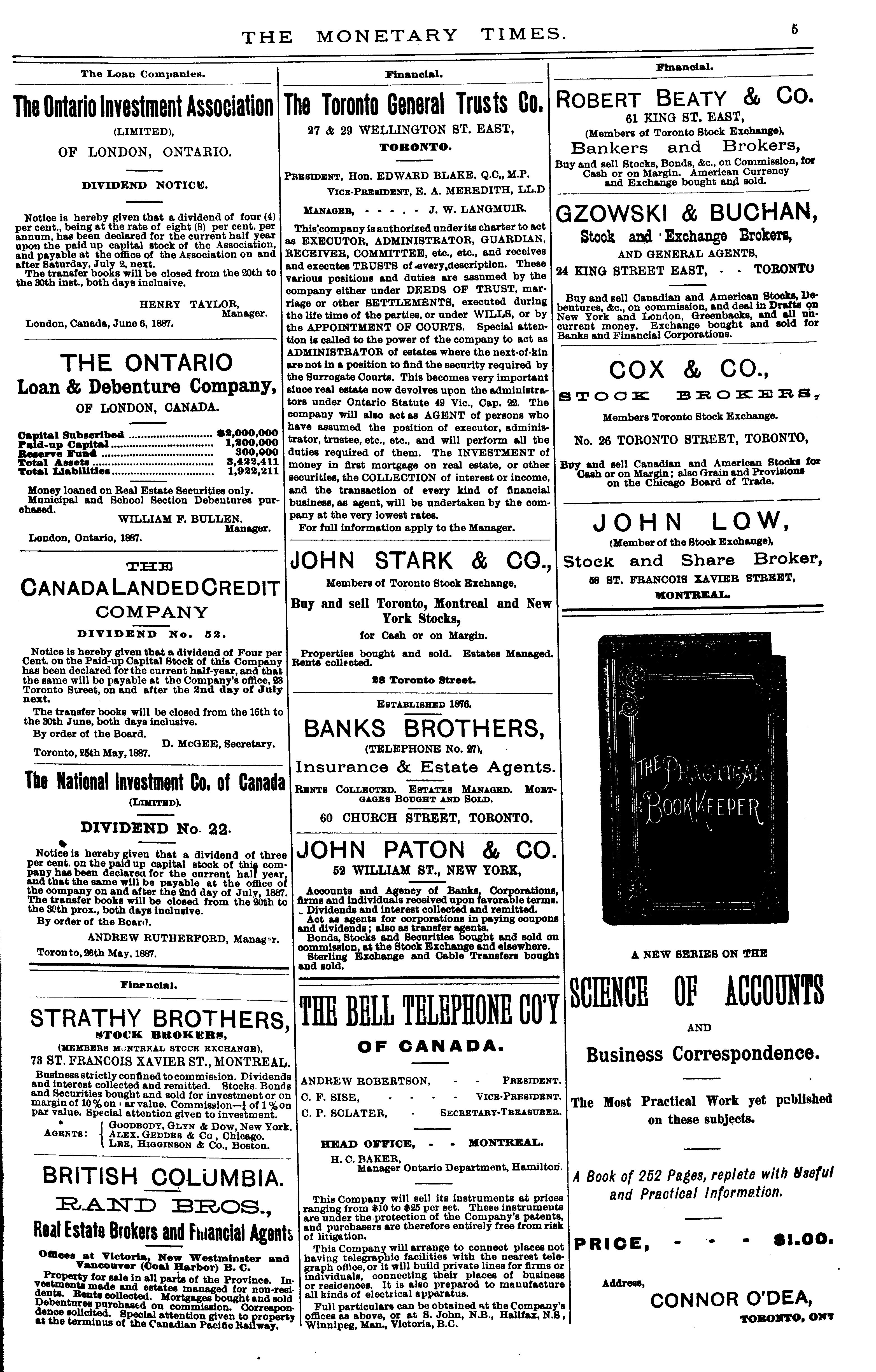 The monetary times, trade review and insurance chronicle : [Vol. 21, no. 1 (July 1, 1887)]