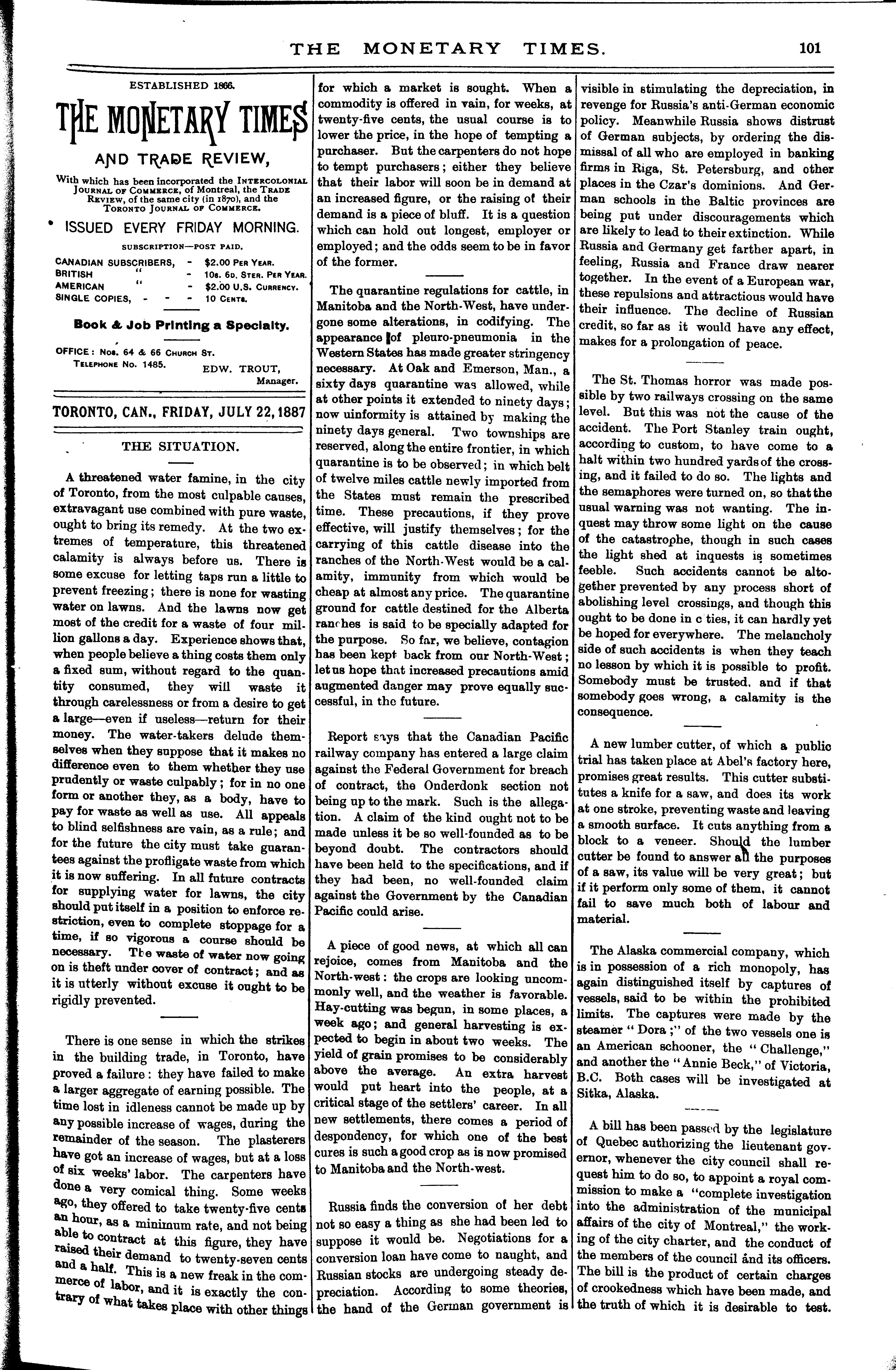 The monetary times, trade review and insurance chronicle : [Vol. 21, no. 4] (July 22, 1887)]