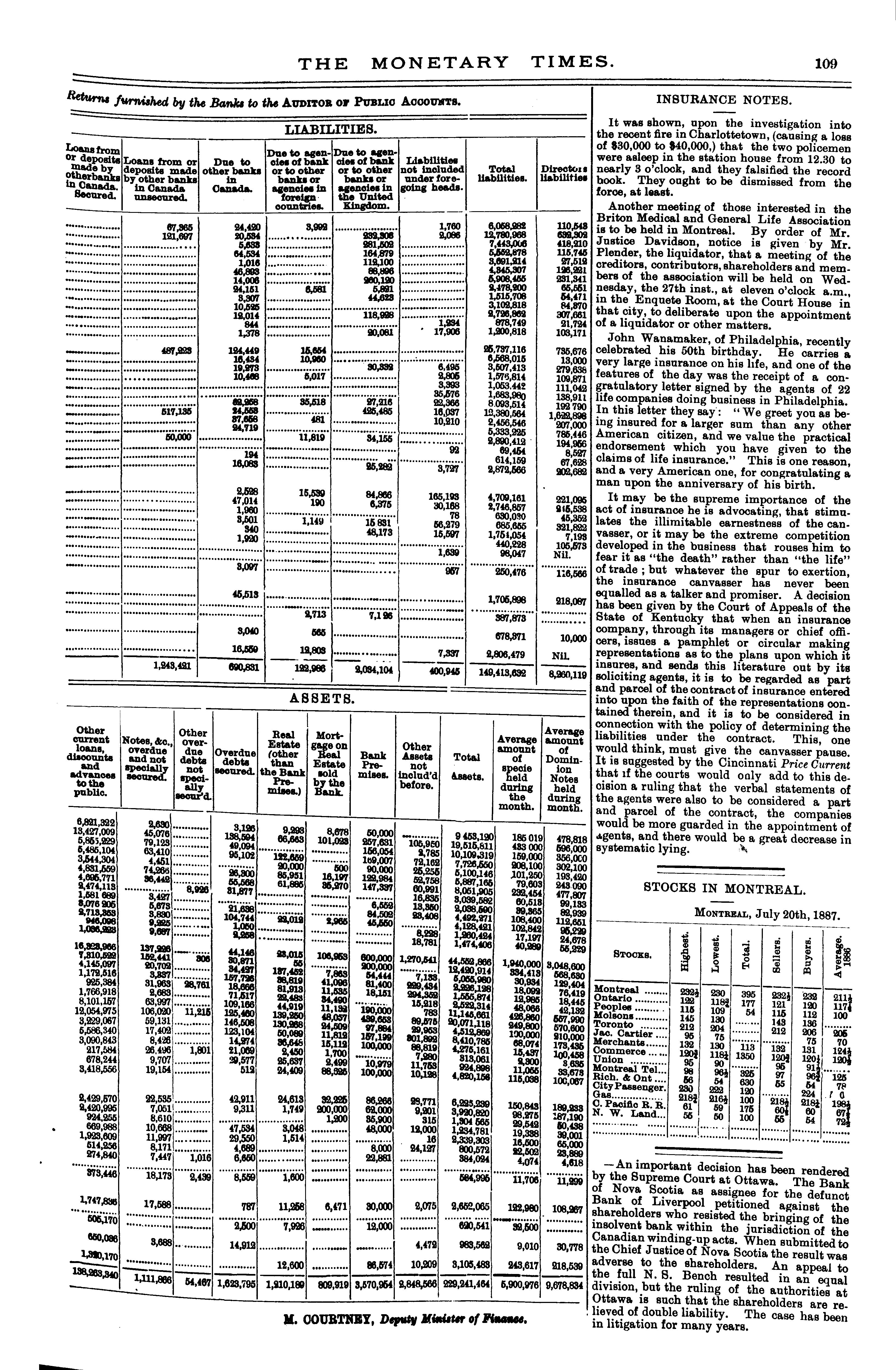 The monetary times, trade review and insurance chronicle : [Vol. 21, no. 4] (July 22, 1887)]