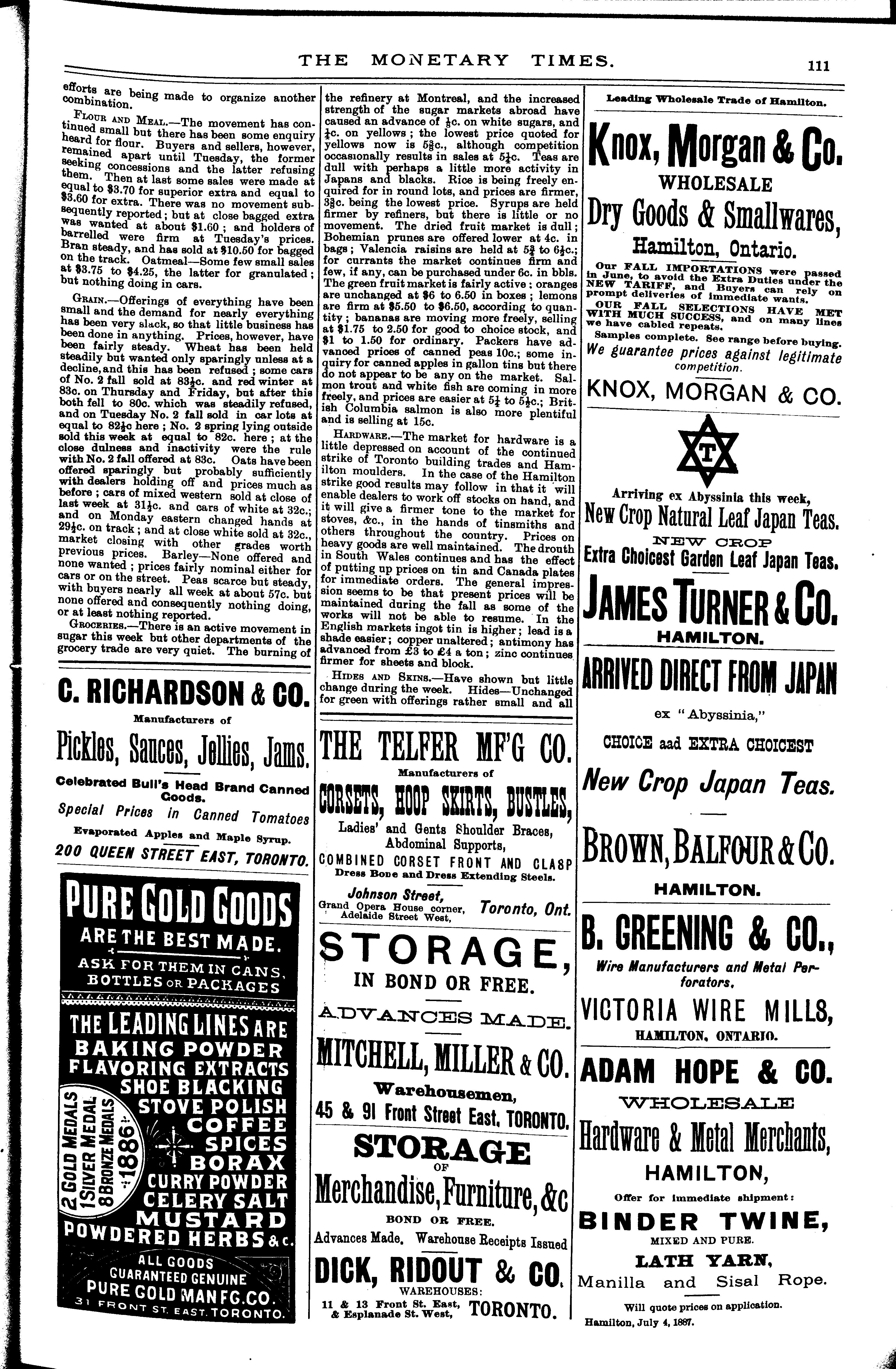 The monetary times, trade review and insurance chronicle : [Vol. 21, no. 4] (July 22, 1887)]