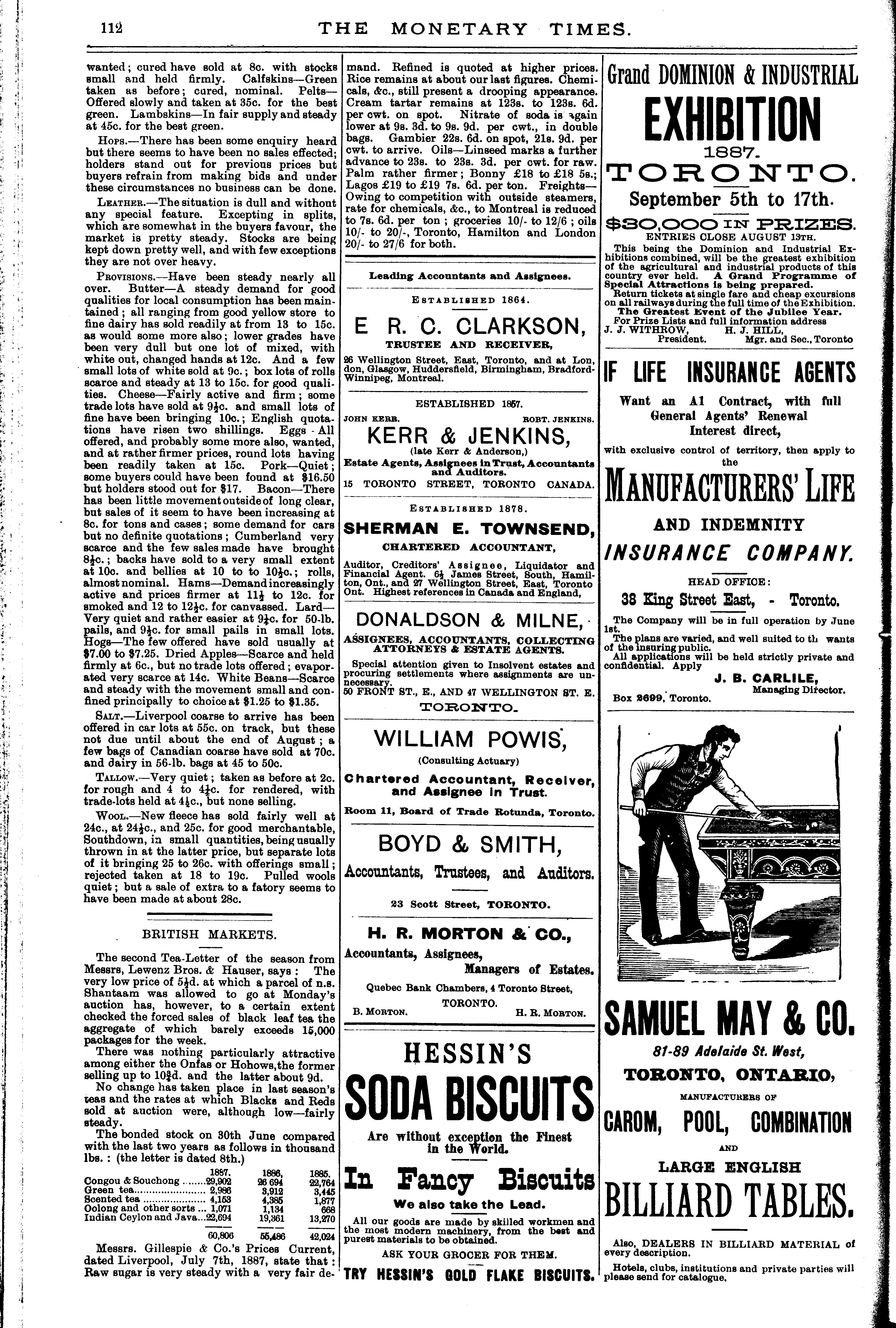 The monetary times, trade review and insurance chronicle : [Vol. 21, no. 4] (July 22, 1887)]