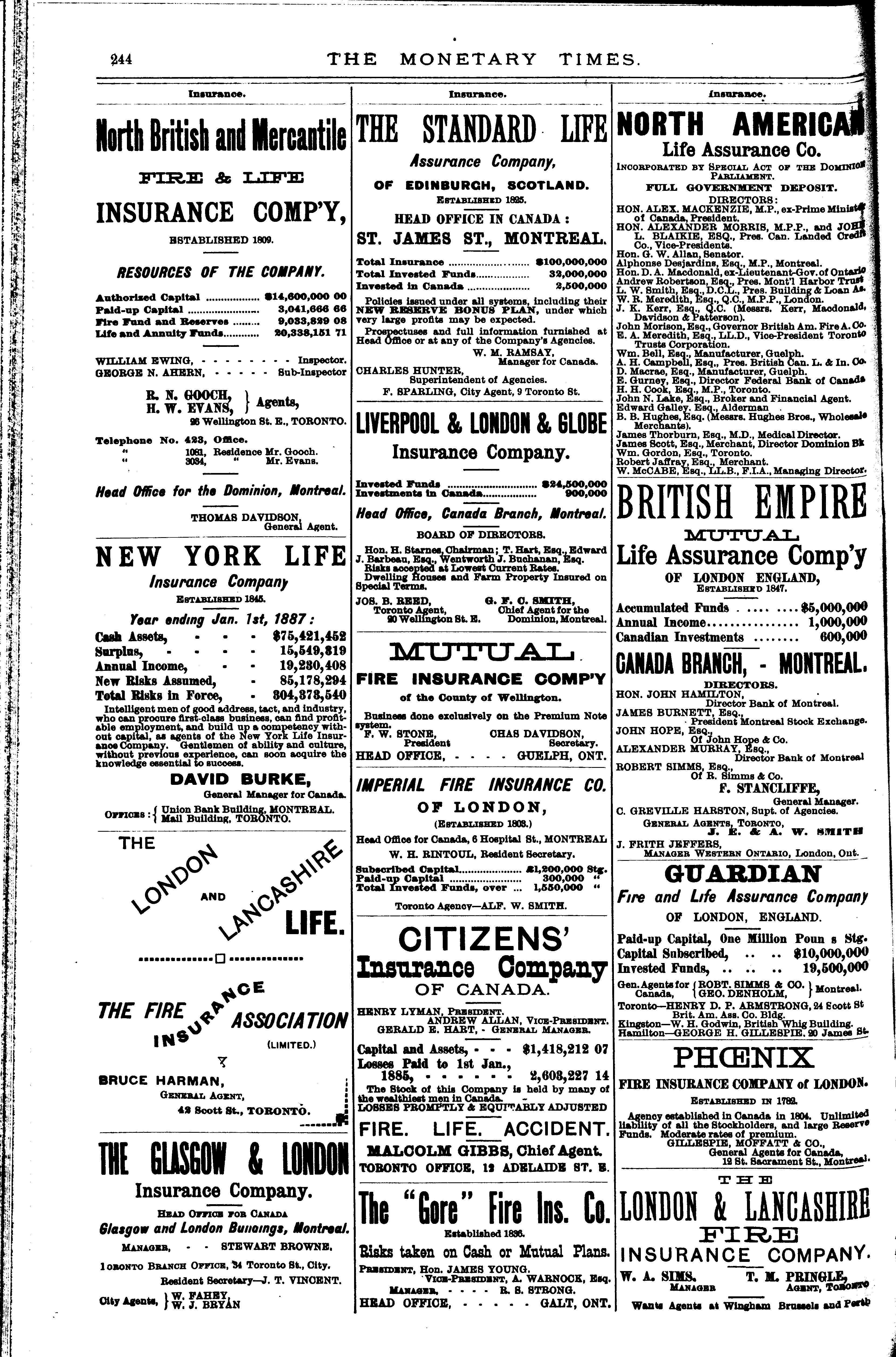 - [The monetary times, trade review and insurance chronicle] [[Vol. 21, no. 8] (Aug. 19, 1887)]