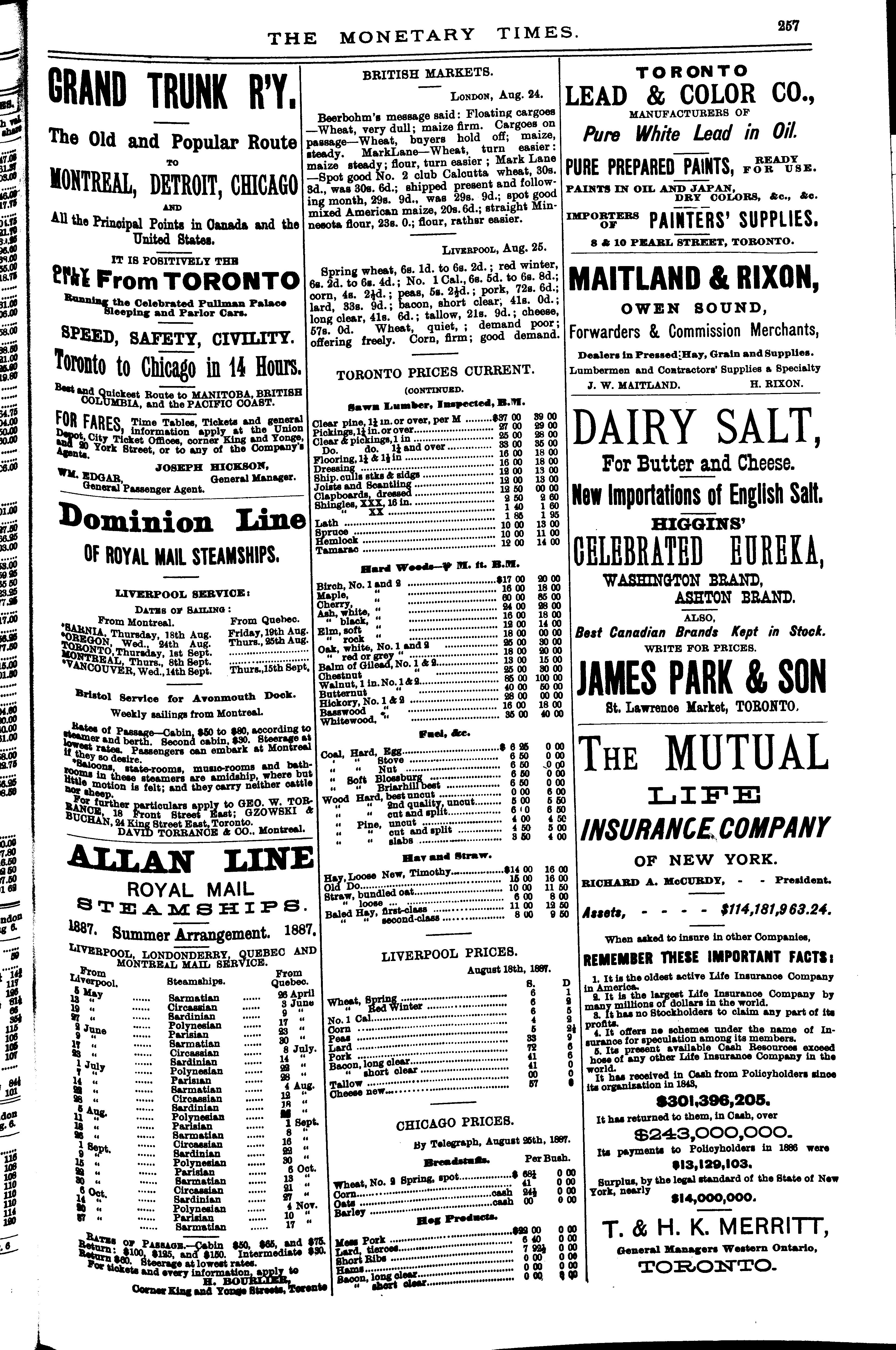 [The monetary times, trade review and insurance chronicle] [[Vol. 21, no. 9] (Aug. 26, 1887)]