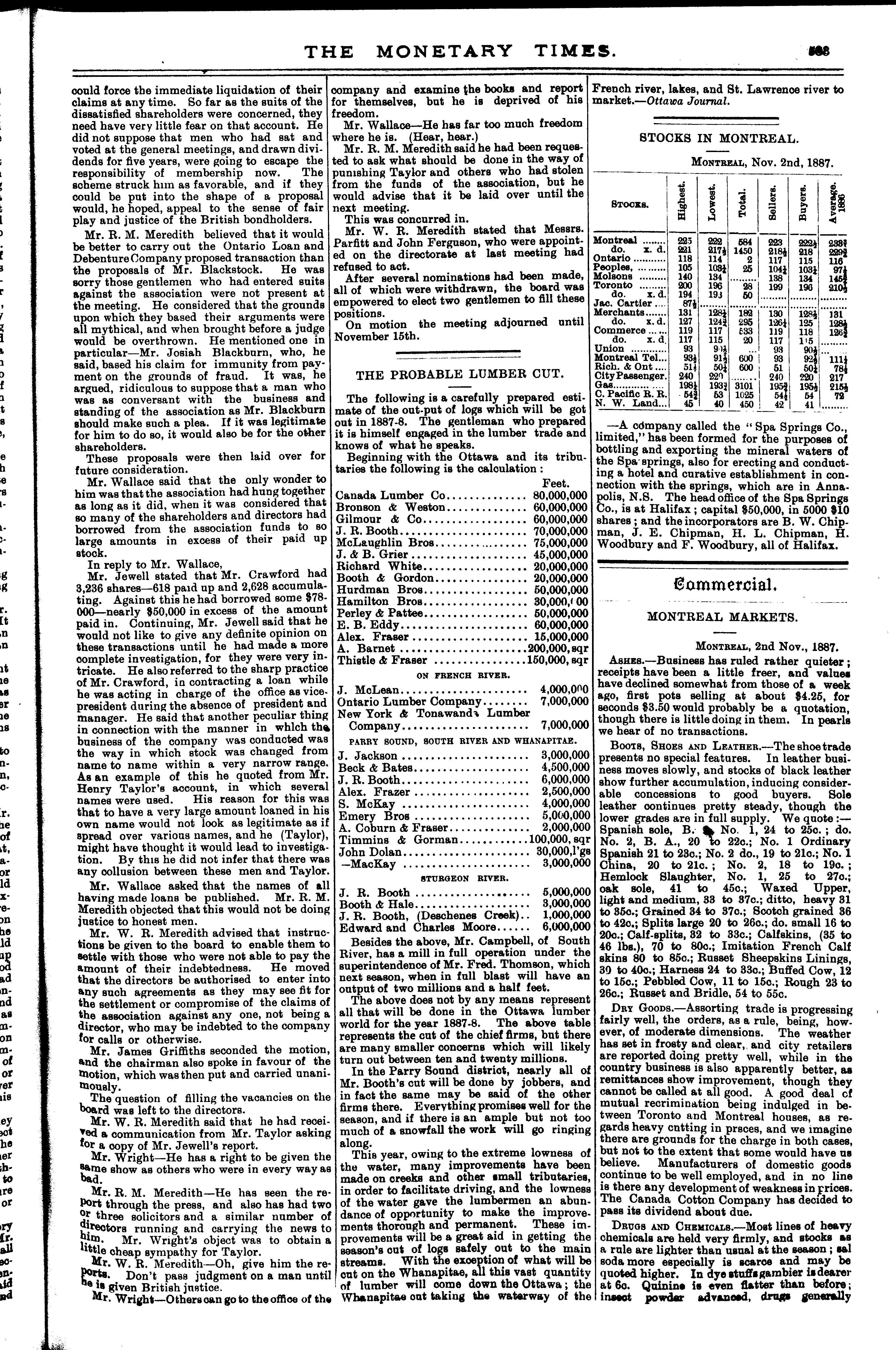 The monetary times, trade review and insurance chronicle : [Vol. 21, no. 19] (Nov. 4, 1887)]