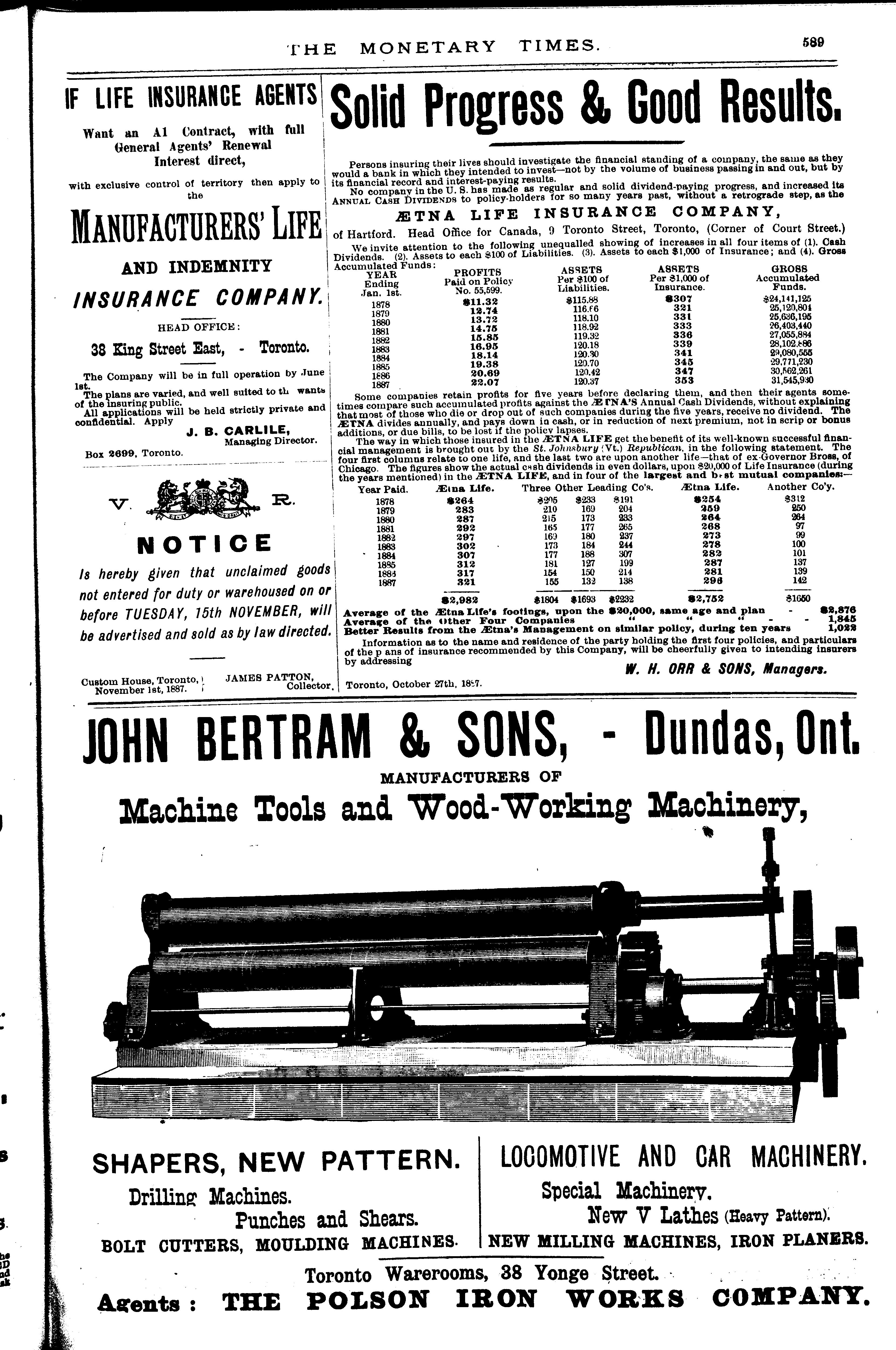The monetary times, trade review and insurance chronicle : [Vol. 21, no. 19] (Nov. 4, 1887)]