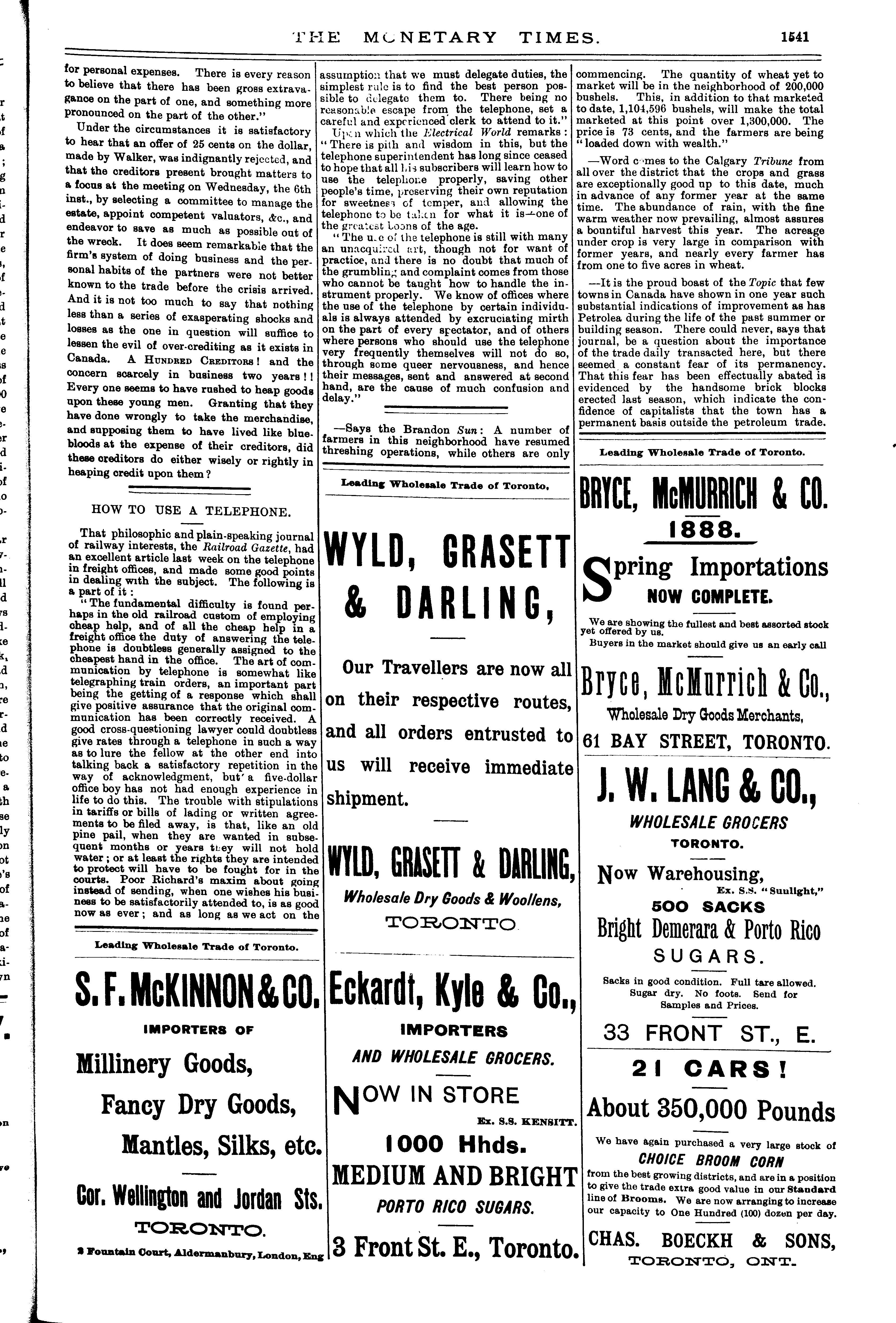 The monetary times, trade review and insurance chronicle : [Vol. 21, no. 51] (June 15, 1888)]