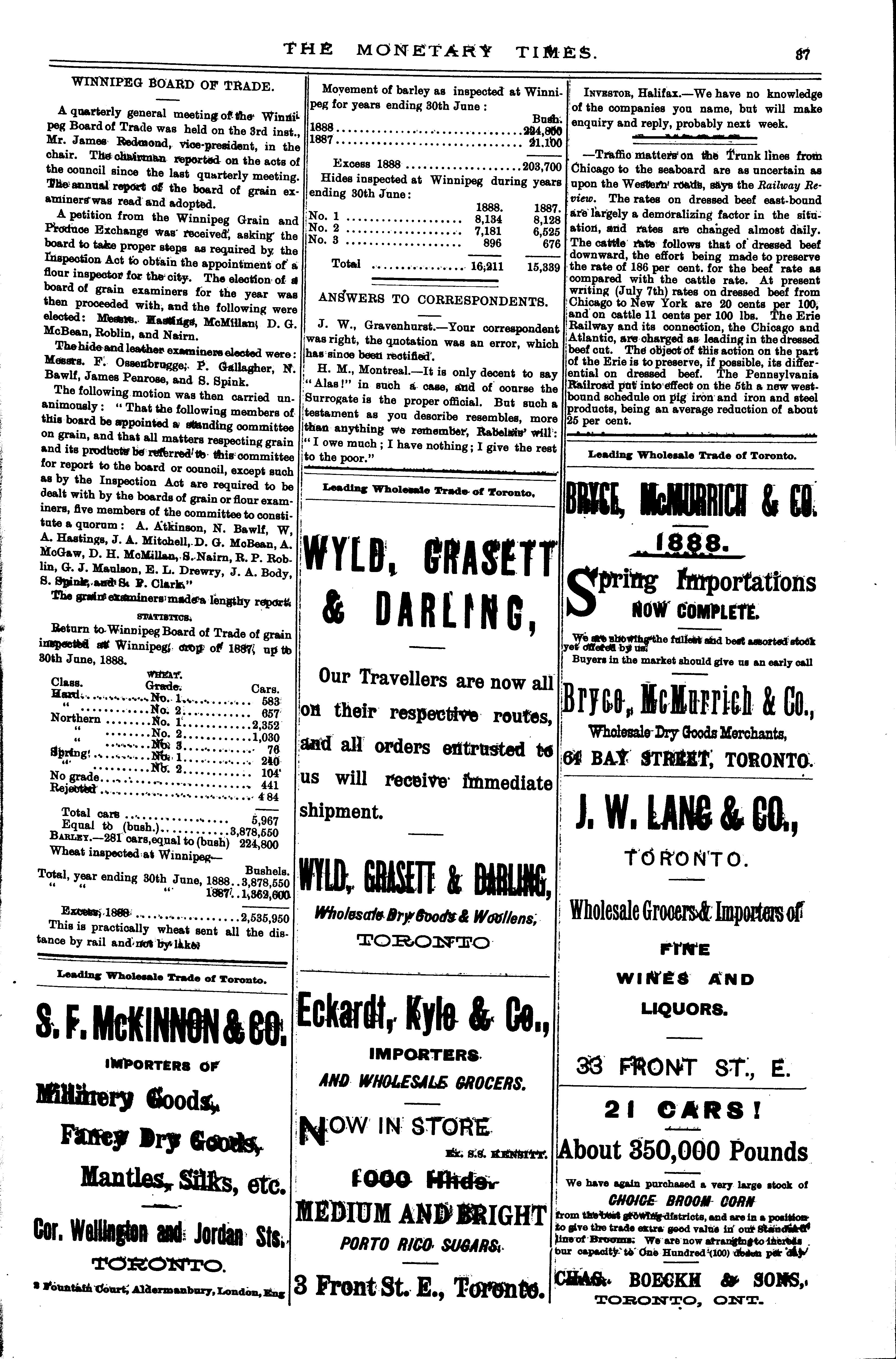 The monetary times, trade review and insurance chronicle : [Vol. 22, no. 2 (July 13, 1888)]