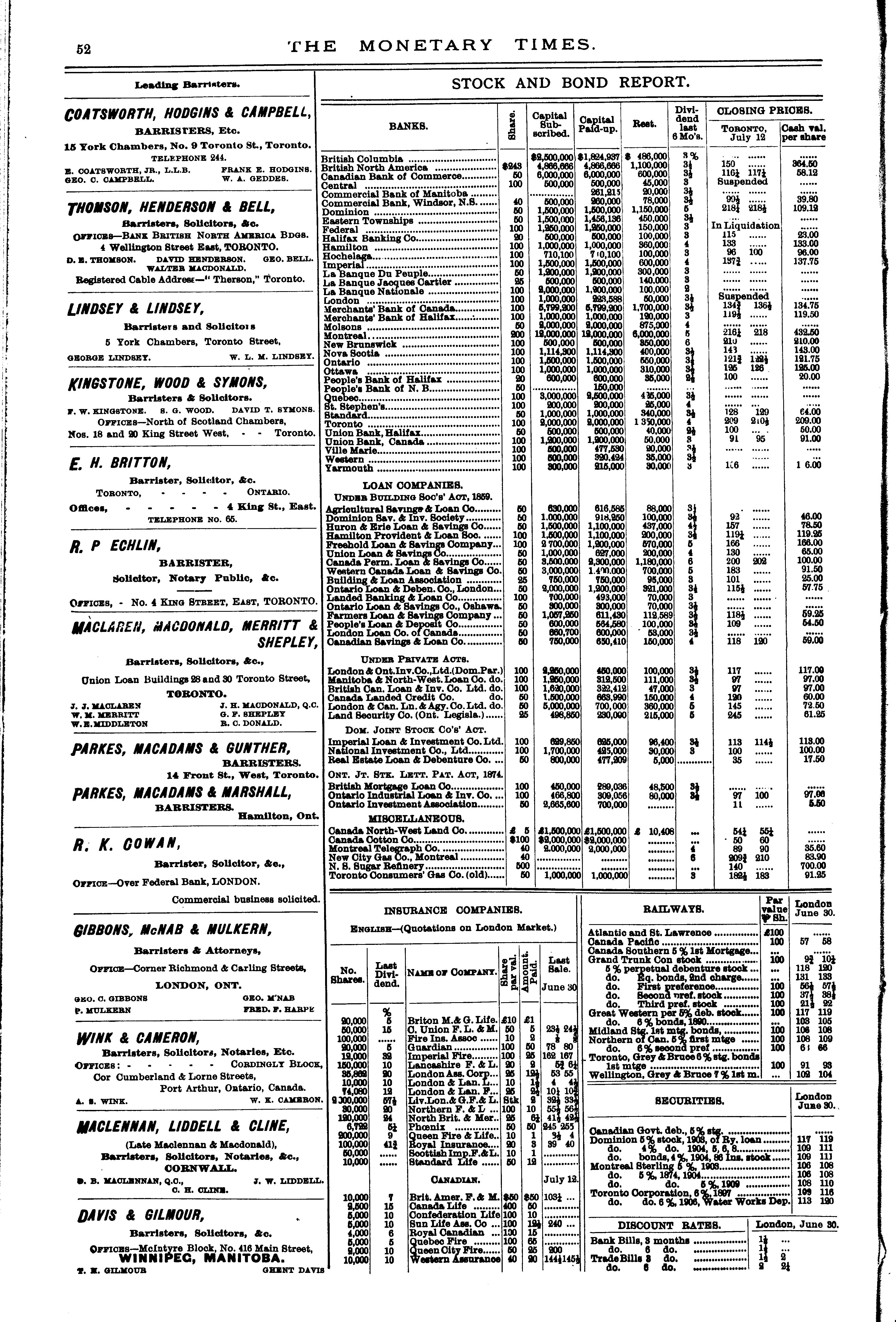 - The monetary times, trade review and insurance chronicle [Vol. 22, no. 2 (July 13, 1888)]