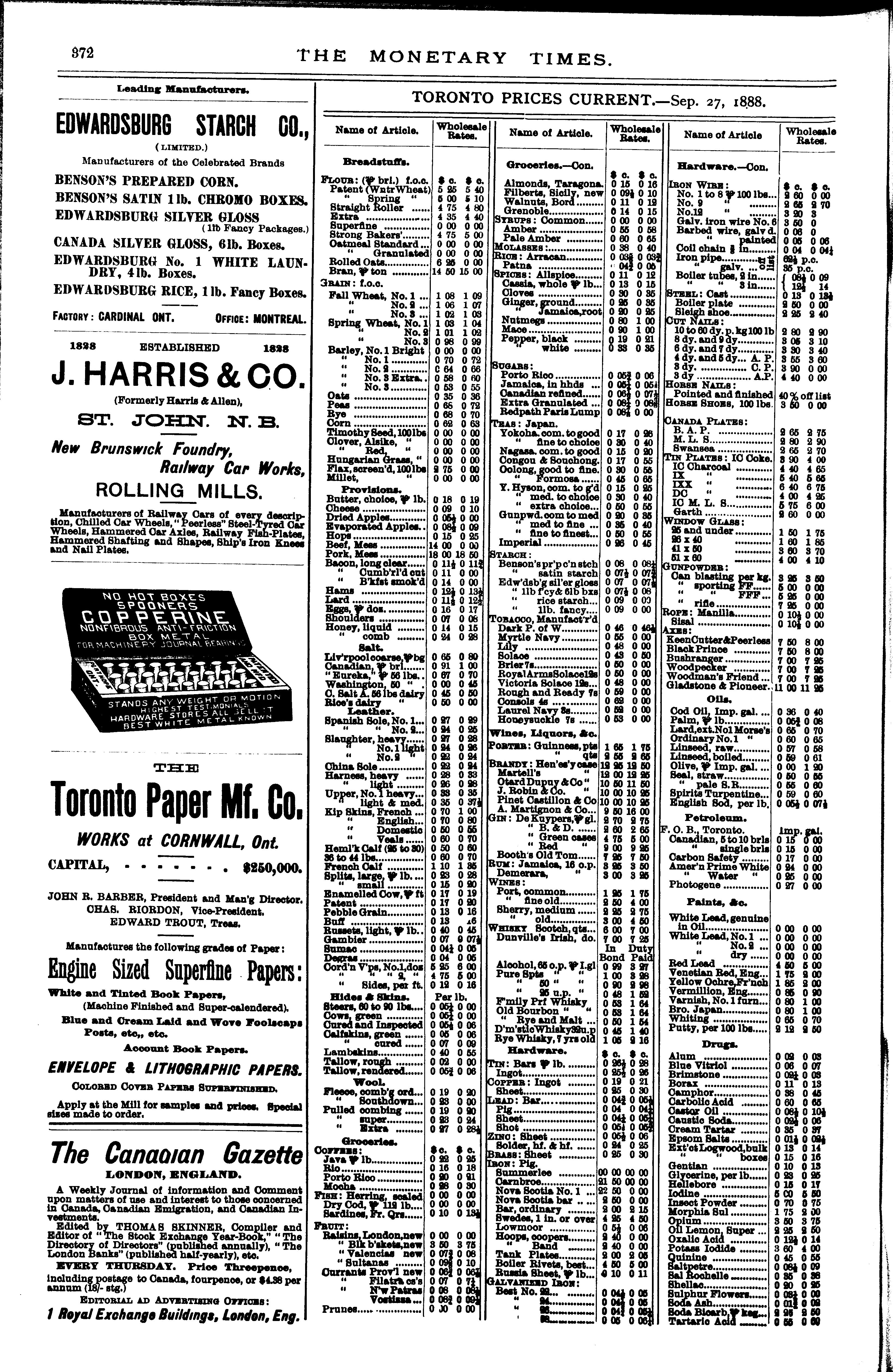 The monetary times, trade review and insurance chronicle : [Vol. 22, no. 13 (Sept. 28, 1888)]
