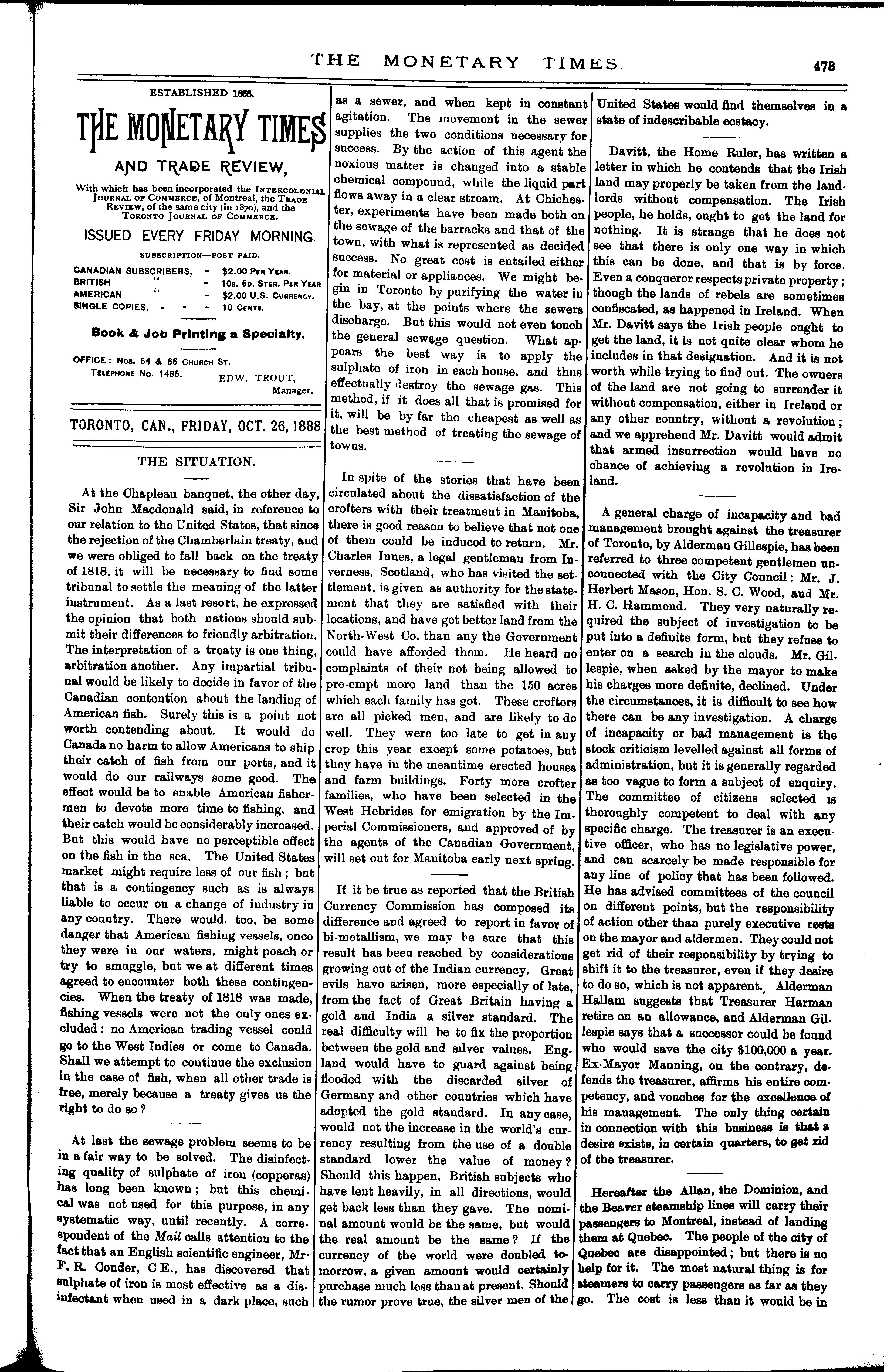 The monetary times, trade review and insurance chronicle : [Vol. 22, no. 17 (Oct. 26, 1888)]