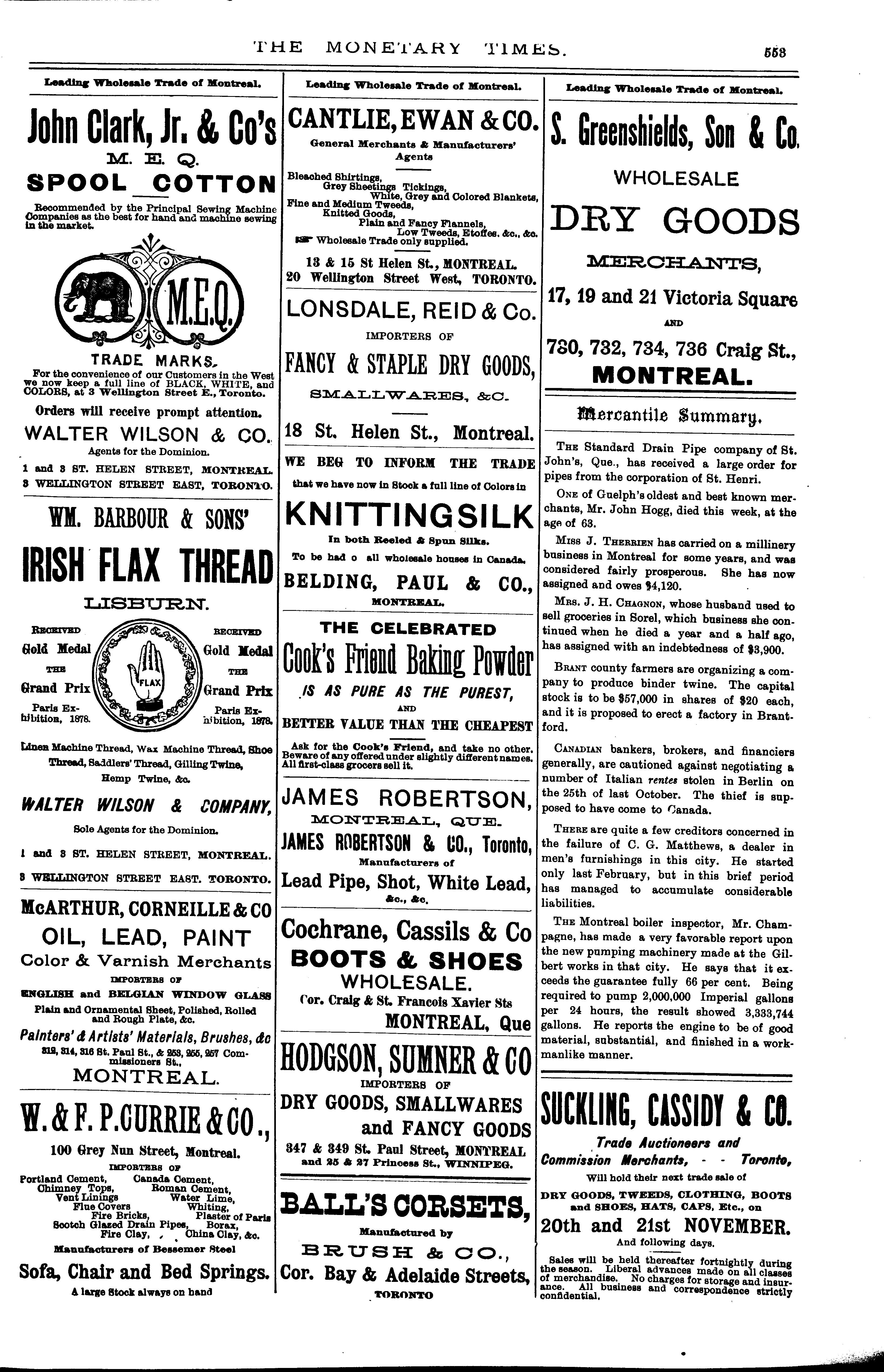 The monetary times, trade review and insurance chronicle : [Vol. 22, no. 20 (Nov. 16, 1888)]