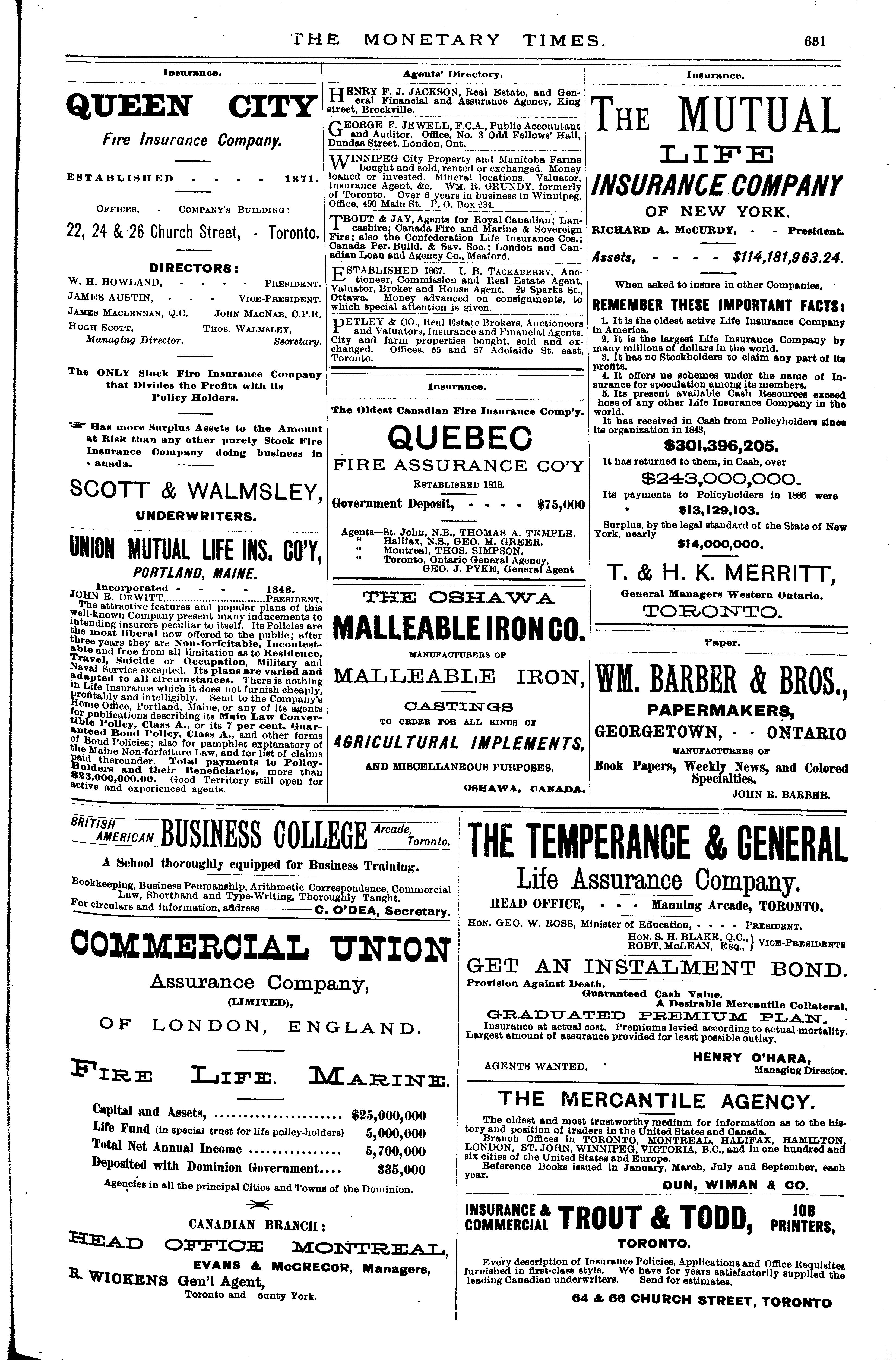 - The monetary times, trade review and insurance chronicle [Vol. 22, no. 22 (Nov. 30, 1888)]