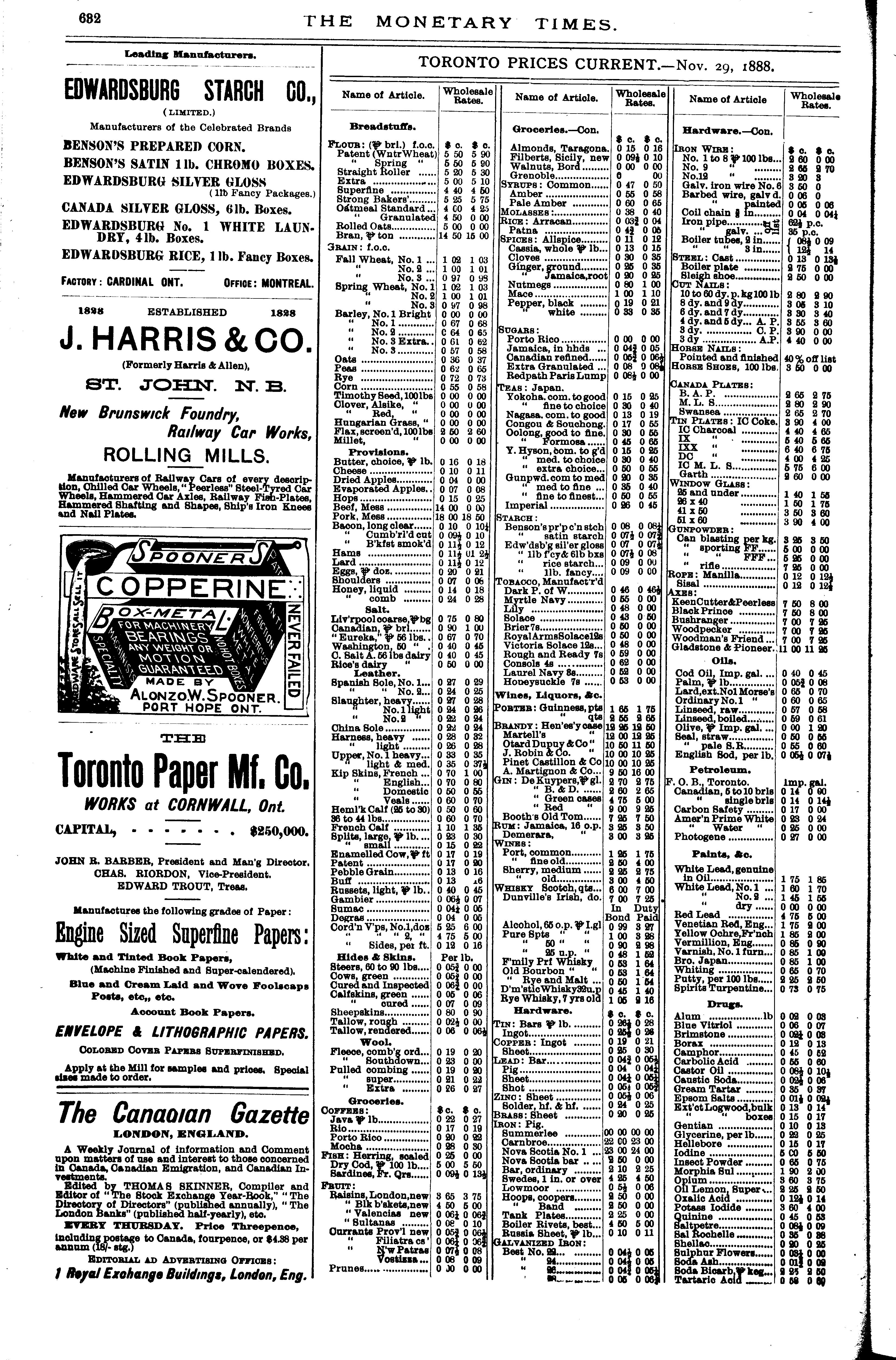 The monetary times, trade review and insurance chronicle : [Vol. 22, no. 22 (Nov. 30, 1888)]
