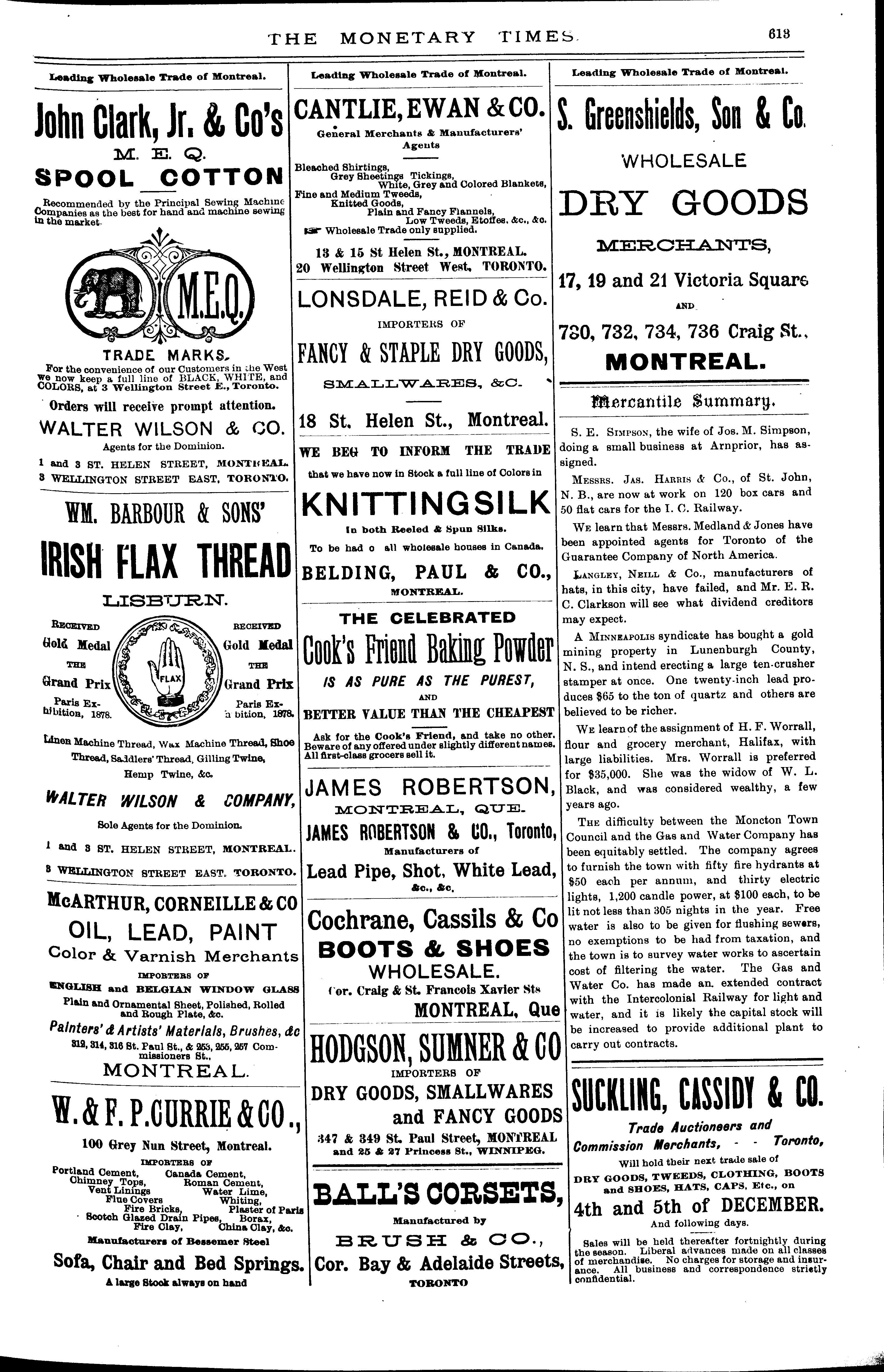 The monetary times, trade review and insurance chronicle : [Vol. 22, no. 22 (Nov. 30, 1888)]