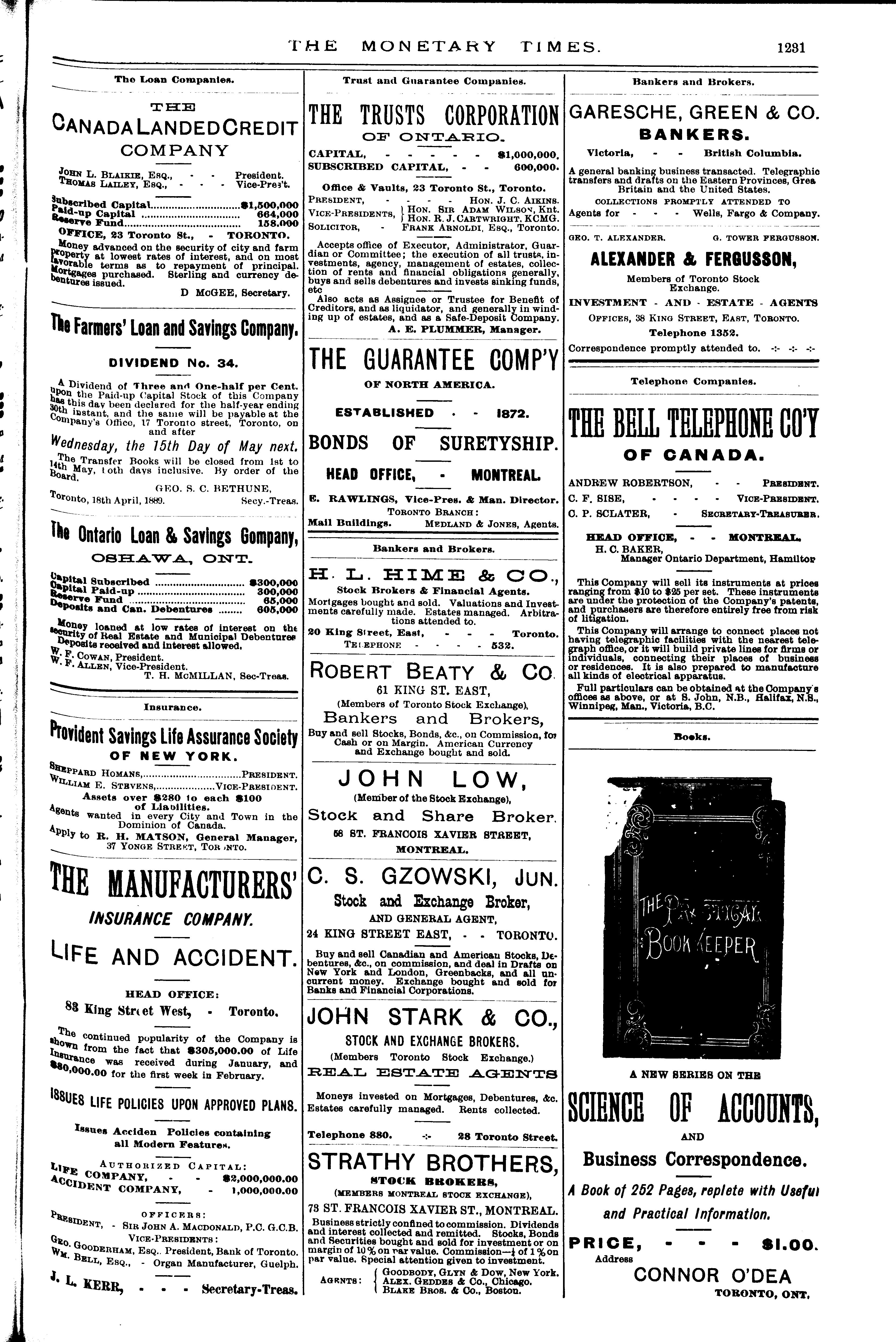 The monetary times, trade review and insurance chronicle : [Vol. 22, no. 43 (Apr. 26, 1889)]