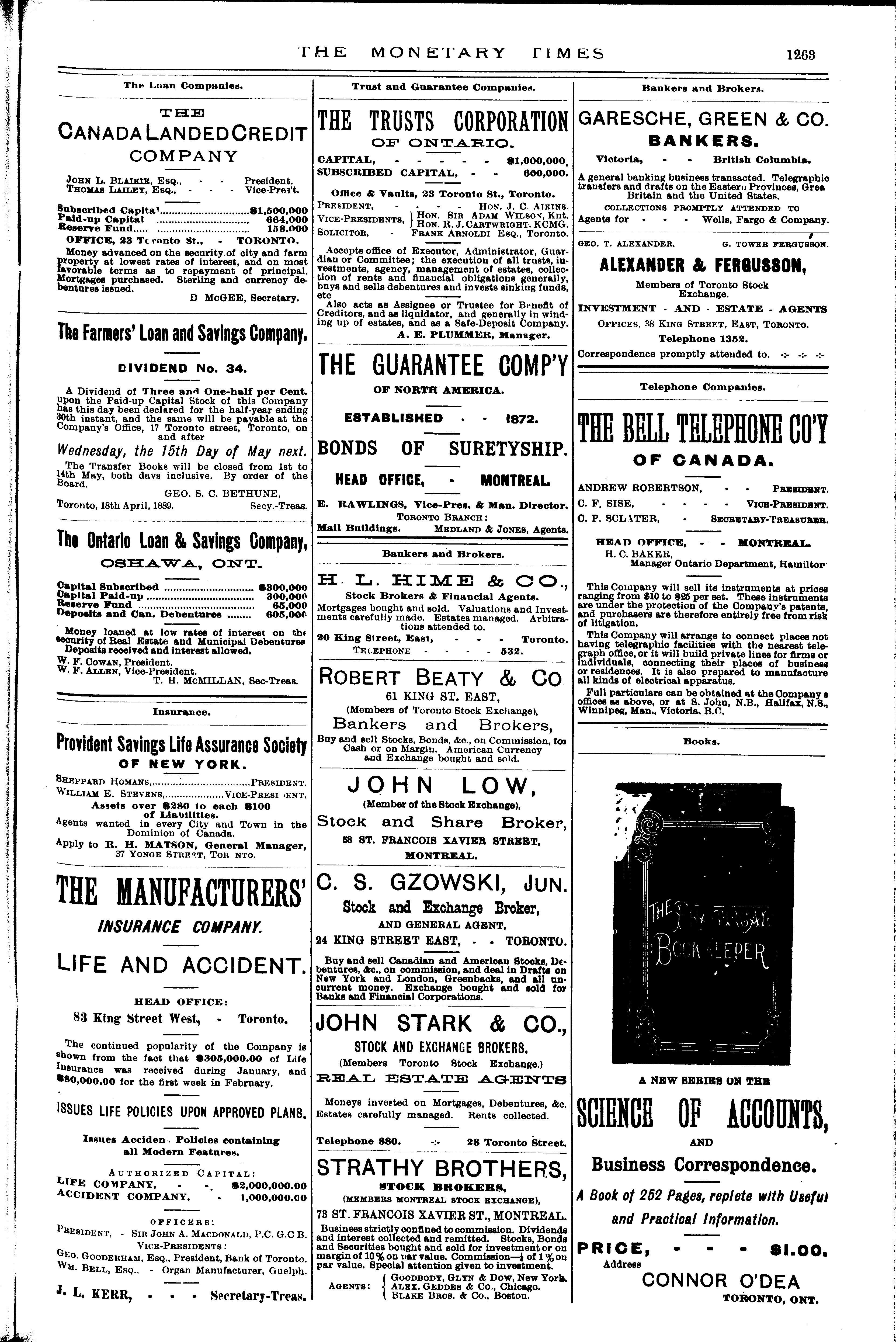 The monetary times, trade review and insurance chronicle : [Vol. 22, no. 44 (May 3, 1889)]