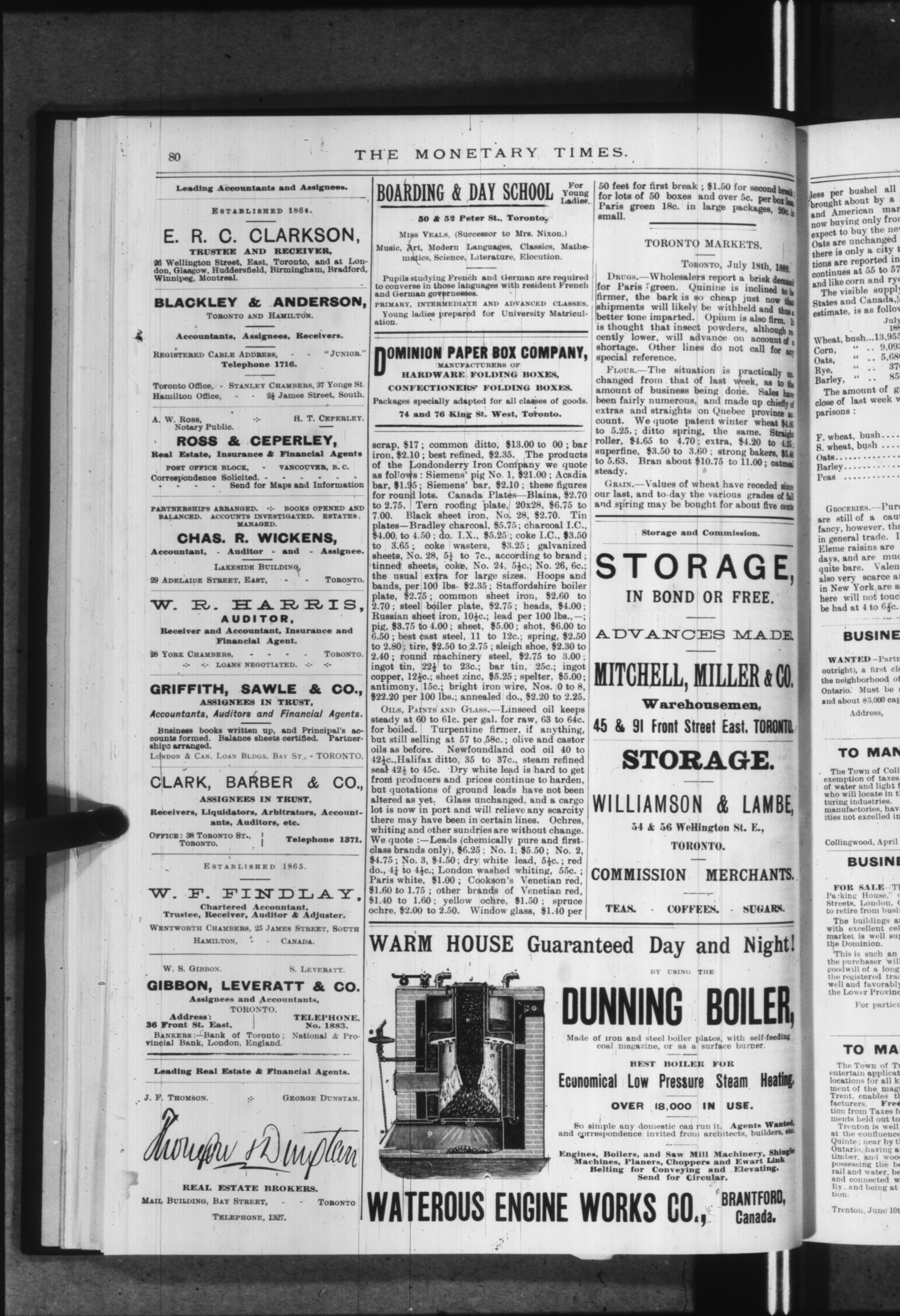 The monetary times, trade review and insurance chronicle : Vol. XXIII, No. 3 (July 19, 1889)
