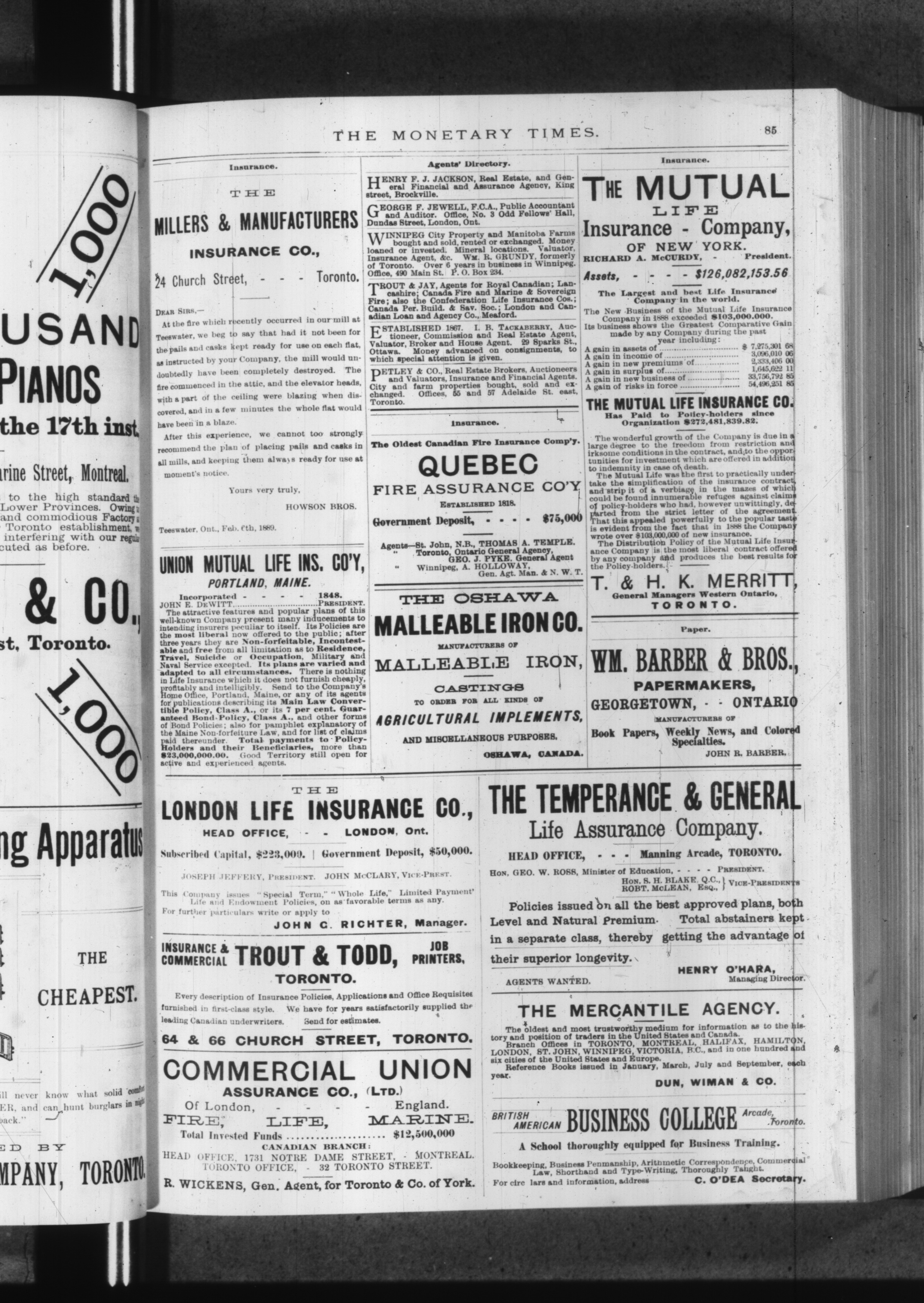 The monetary times, trade review and insurance chronicle : Vol. XXIII, No. 3 (July 19, 1889)