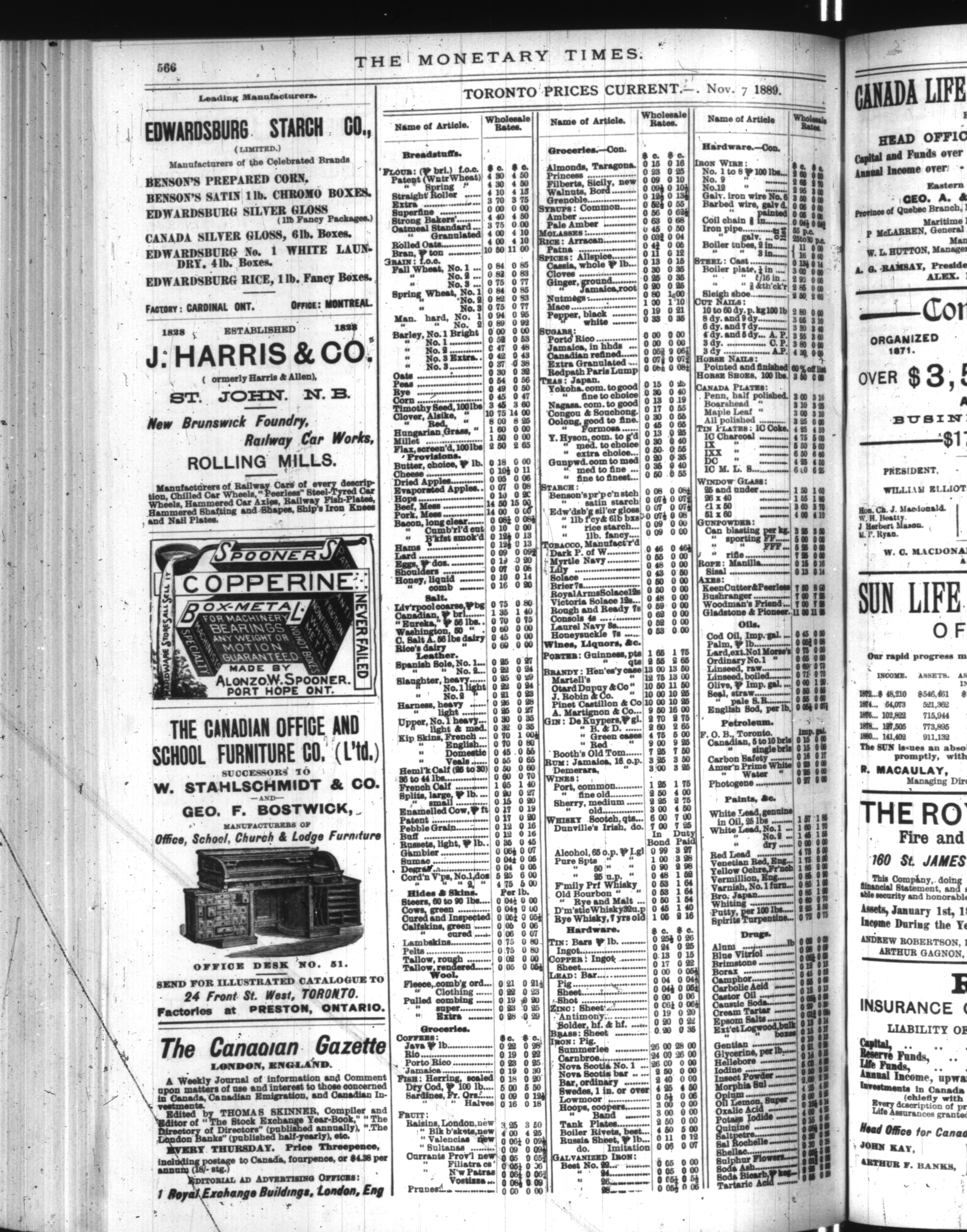 The monetary times, trade review and insurance chronicle : Vol. XXIII, No. 19 (November 8, 1889)
