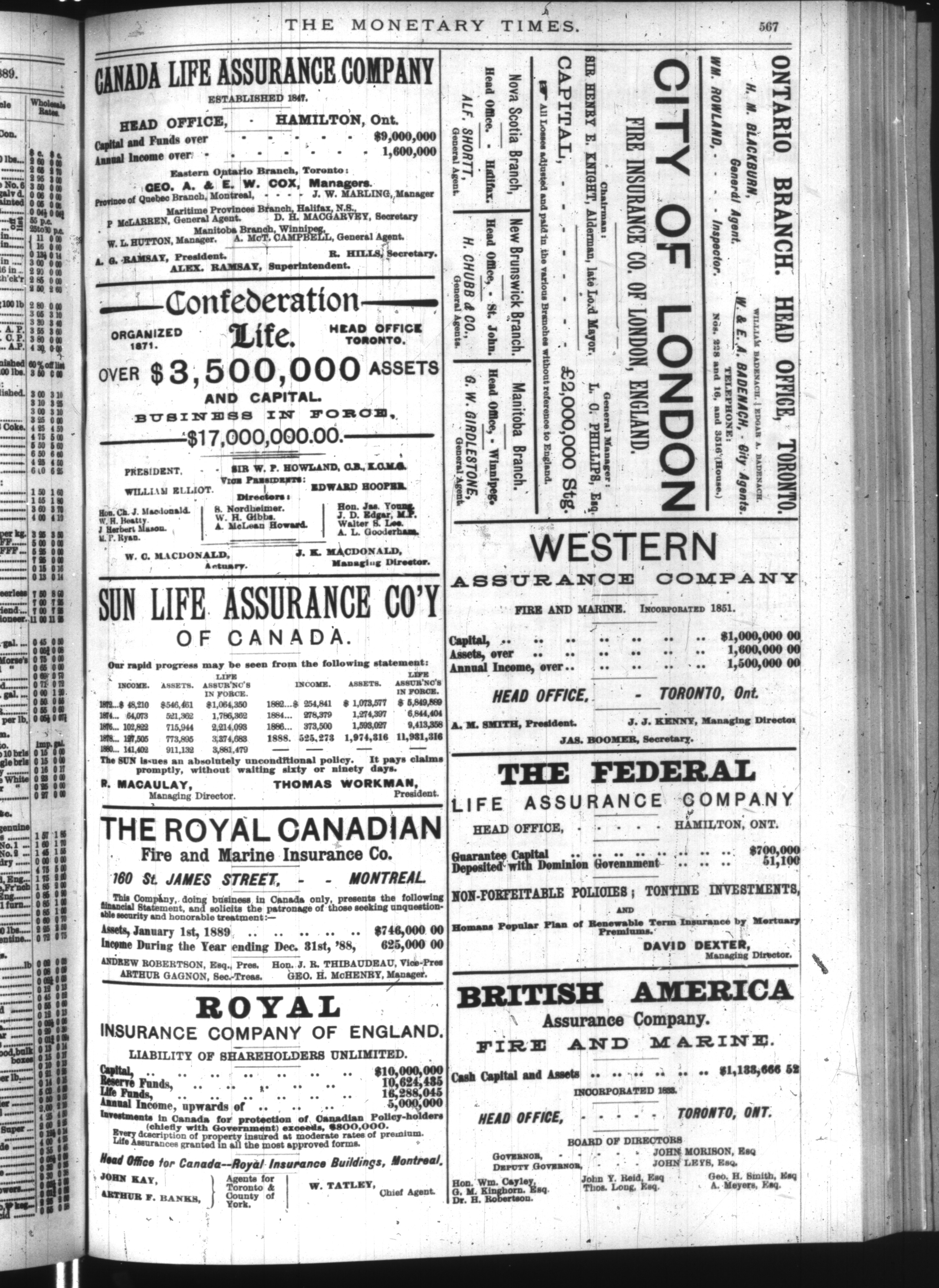 The monetary times, trade review and insurance chronicle : Vol. XXIII, No. 19 (November 8, 1889)