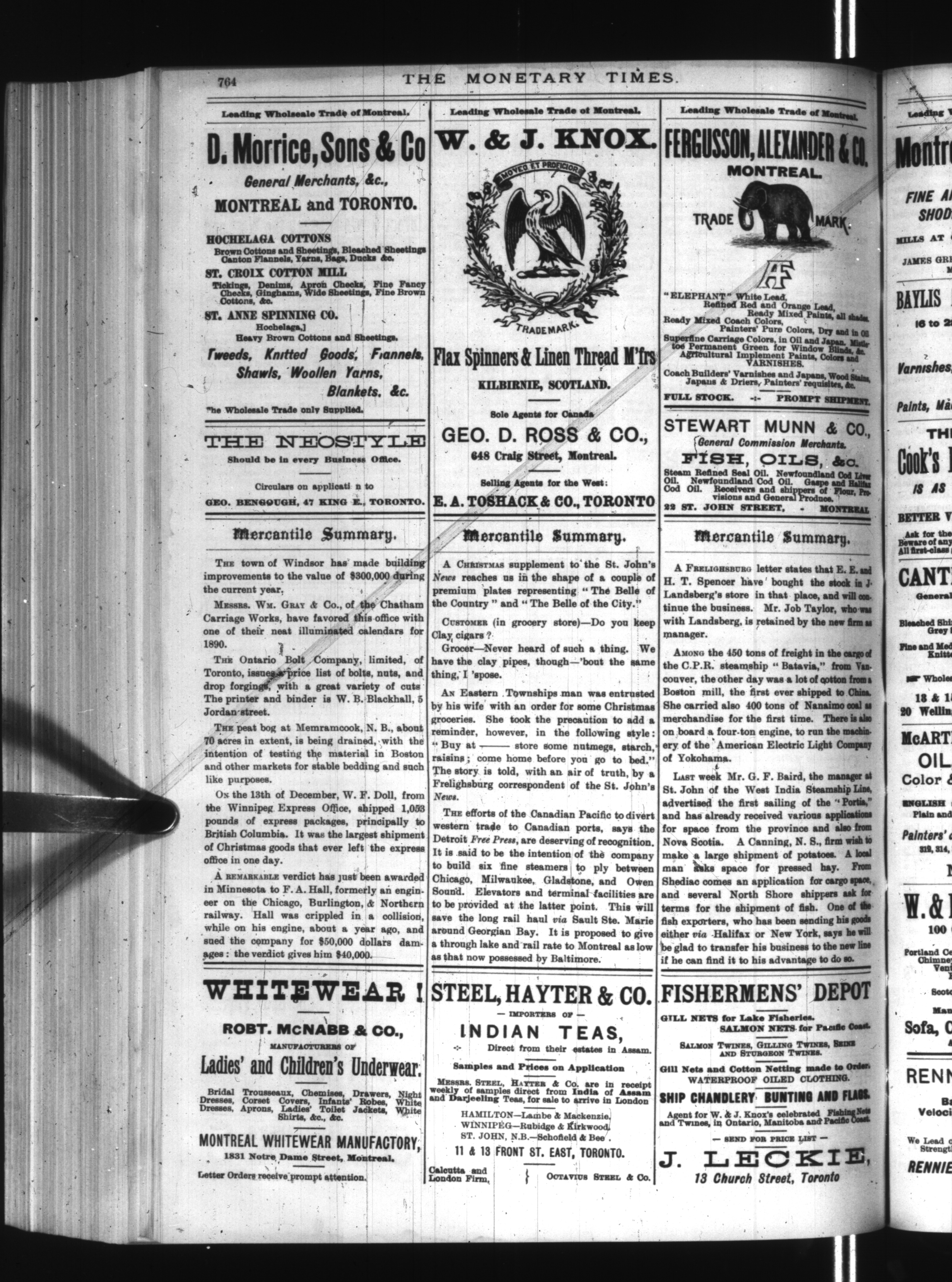 The monetary times, trade review and insurance chronicle : Vol. XXIII, No. 26 (December 27, 1889)