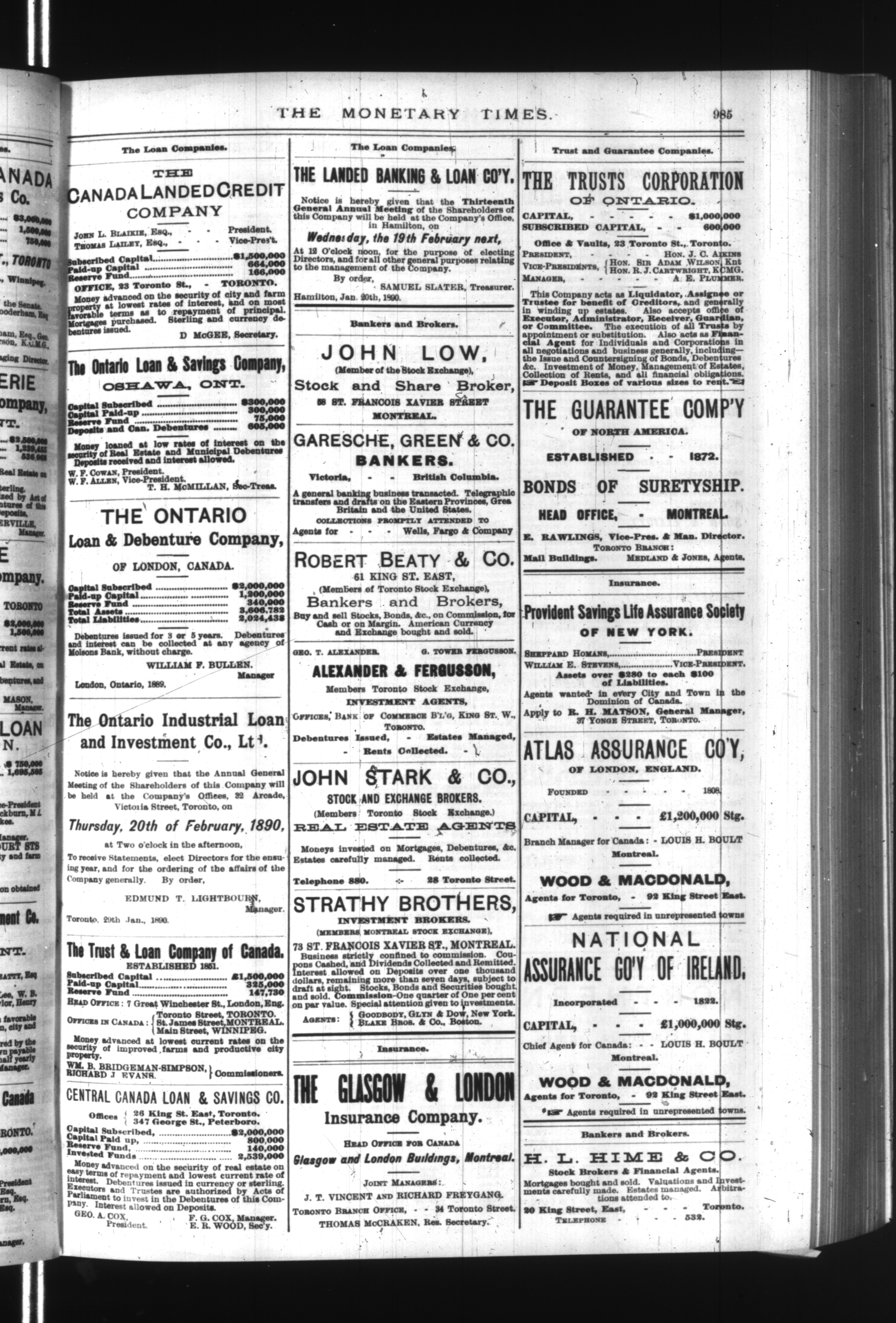 The monetary times, trade review and insurance chronicle : Vol. XXIII, No. 33 (February 14, 1890)