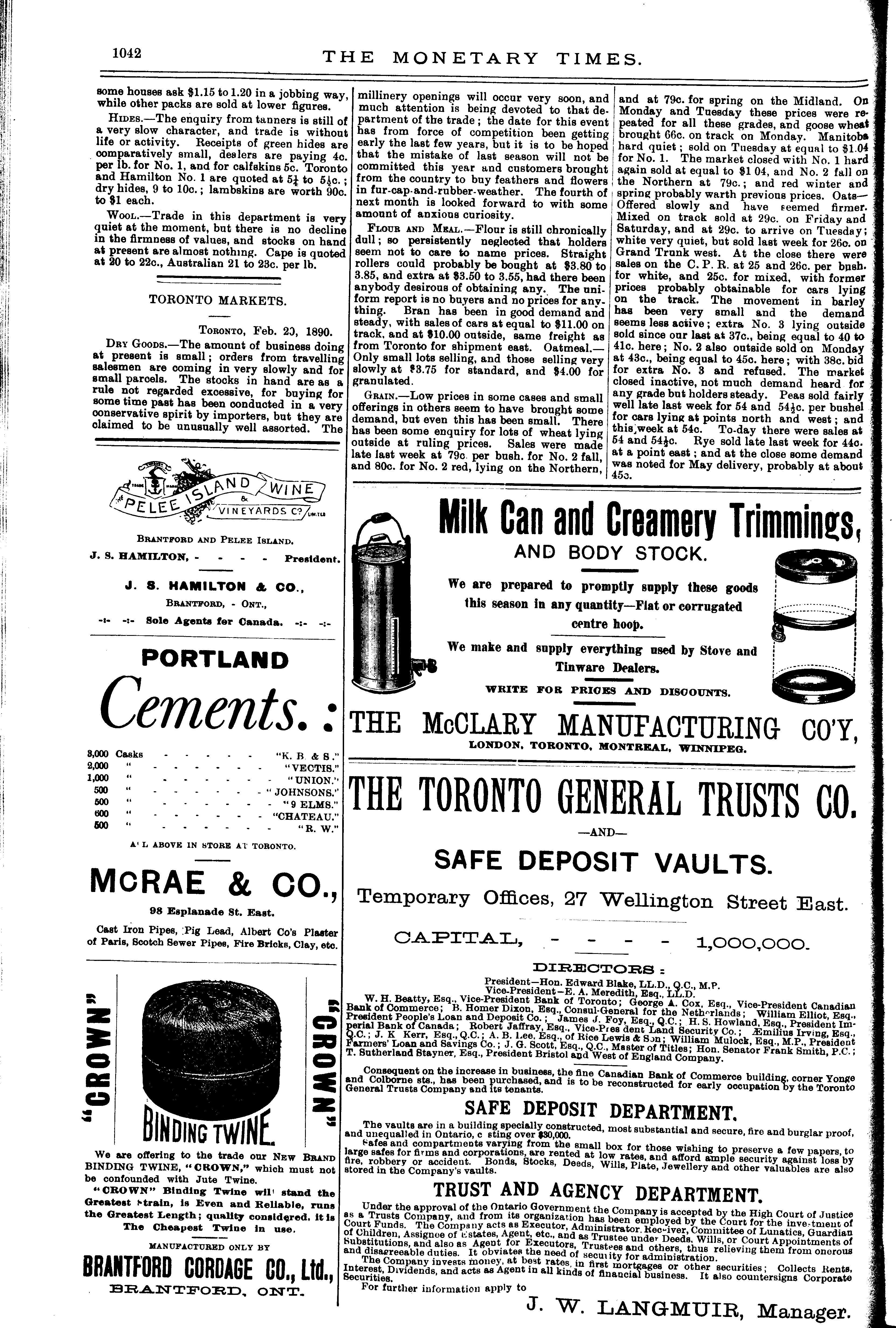 The monetary times, trade review and insurance chronicle : [Vol. 23, no. 34 (Feb. 21, 1890)]