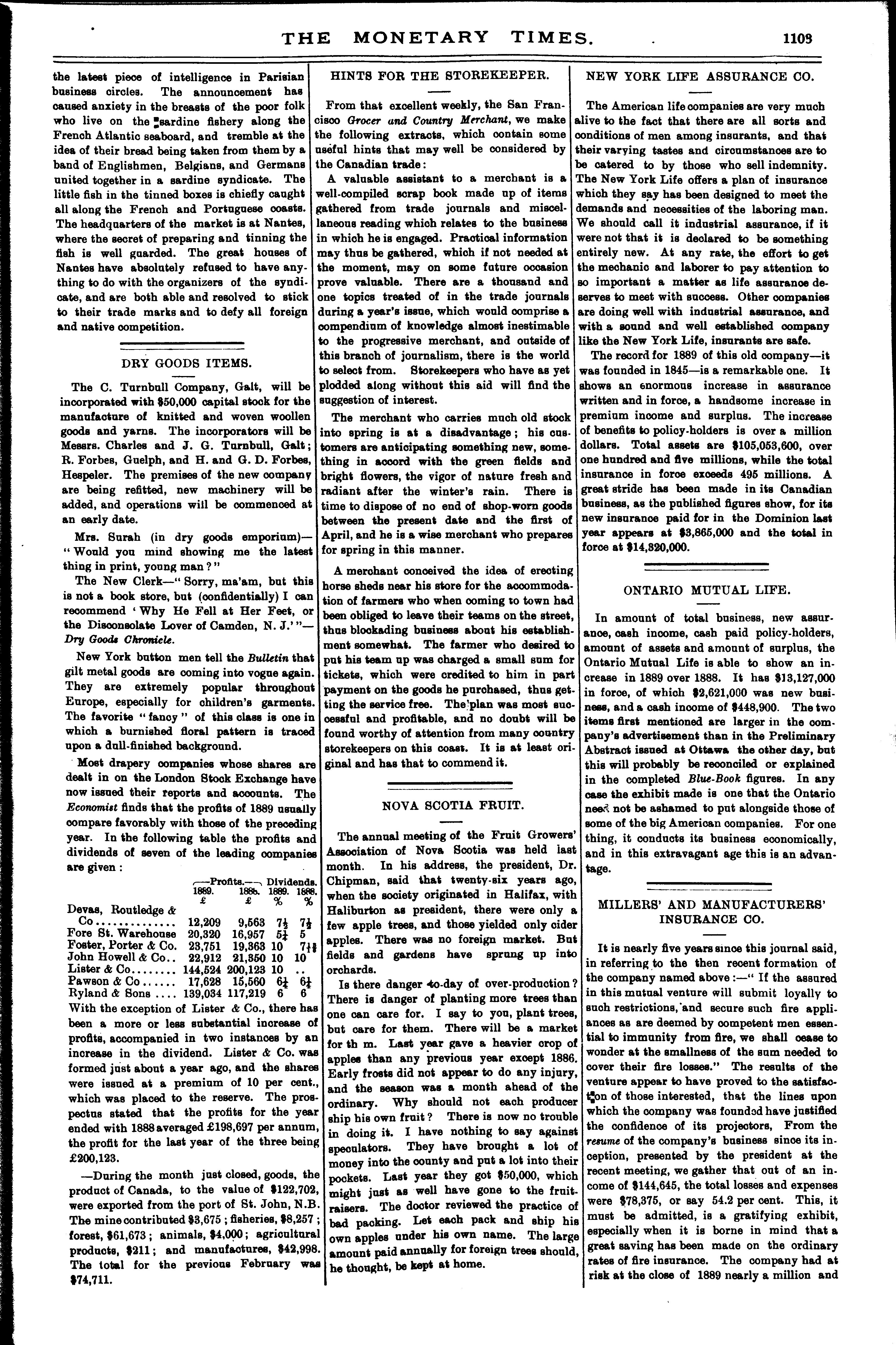 The monetary times, trade review and insurance chronicle : [Vol. 23, no. 36 (Mar. 7, 1890)]