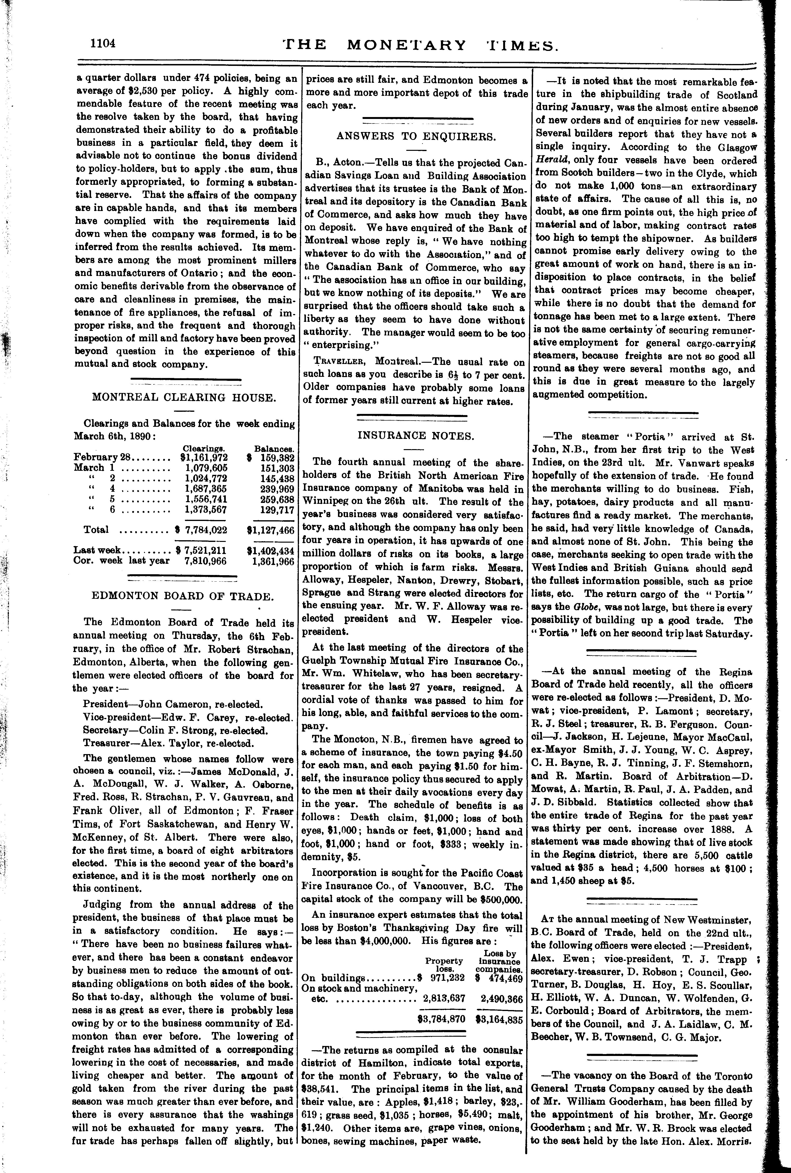 The monetary times, trade review and insurance chronicle [Vol. 23, no. 36 (Mar. 7, 1890)]