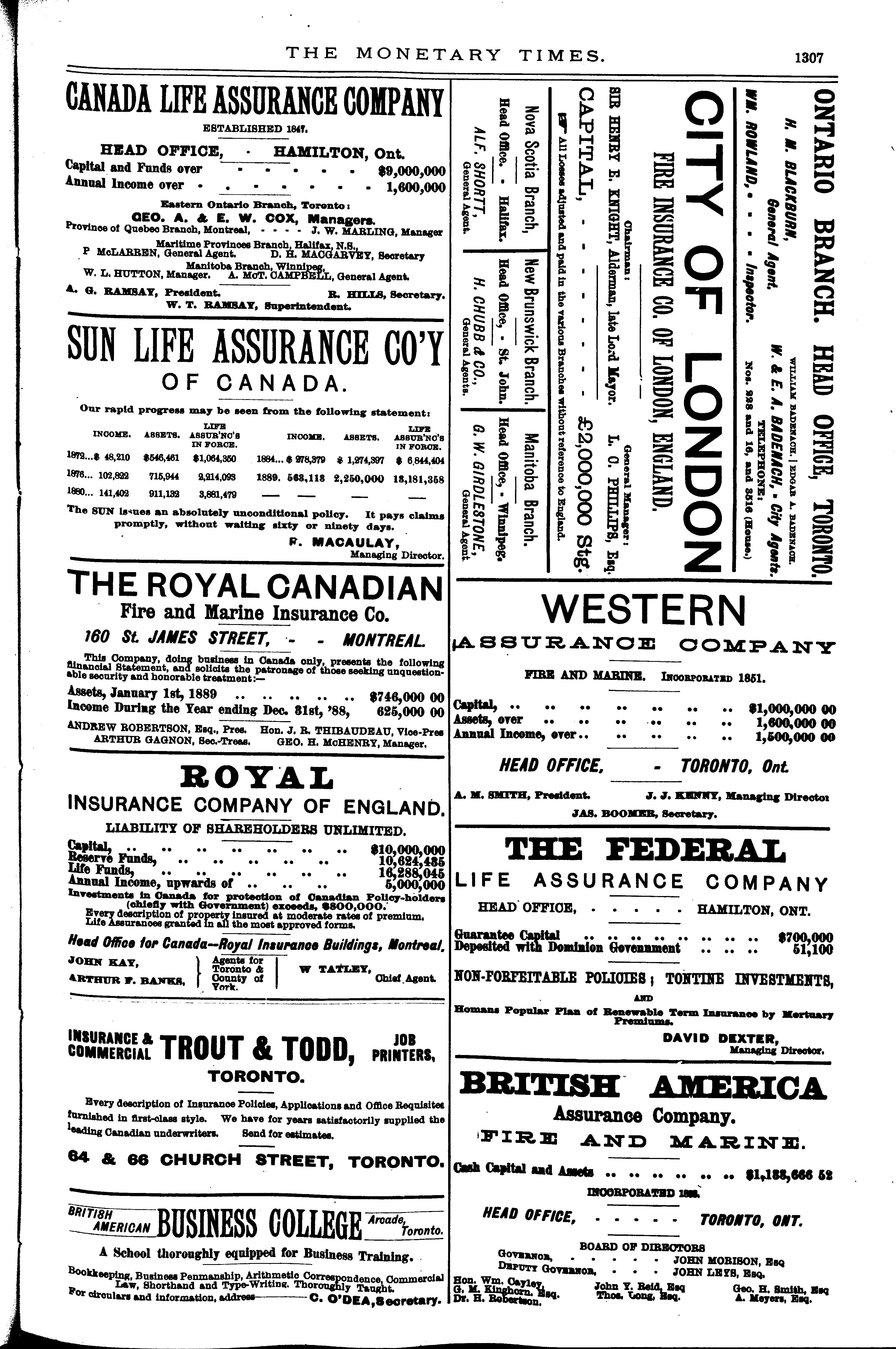 The monetary times, trade review and insurance chronicle : [Vol. 23, no. 42 (Apr. 18, 1890)]