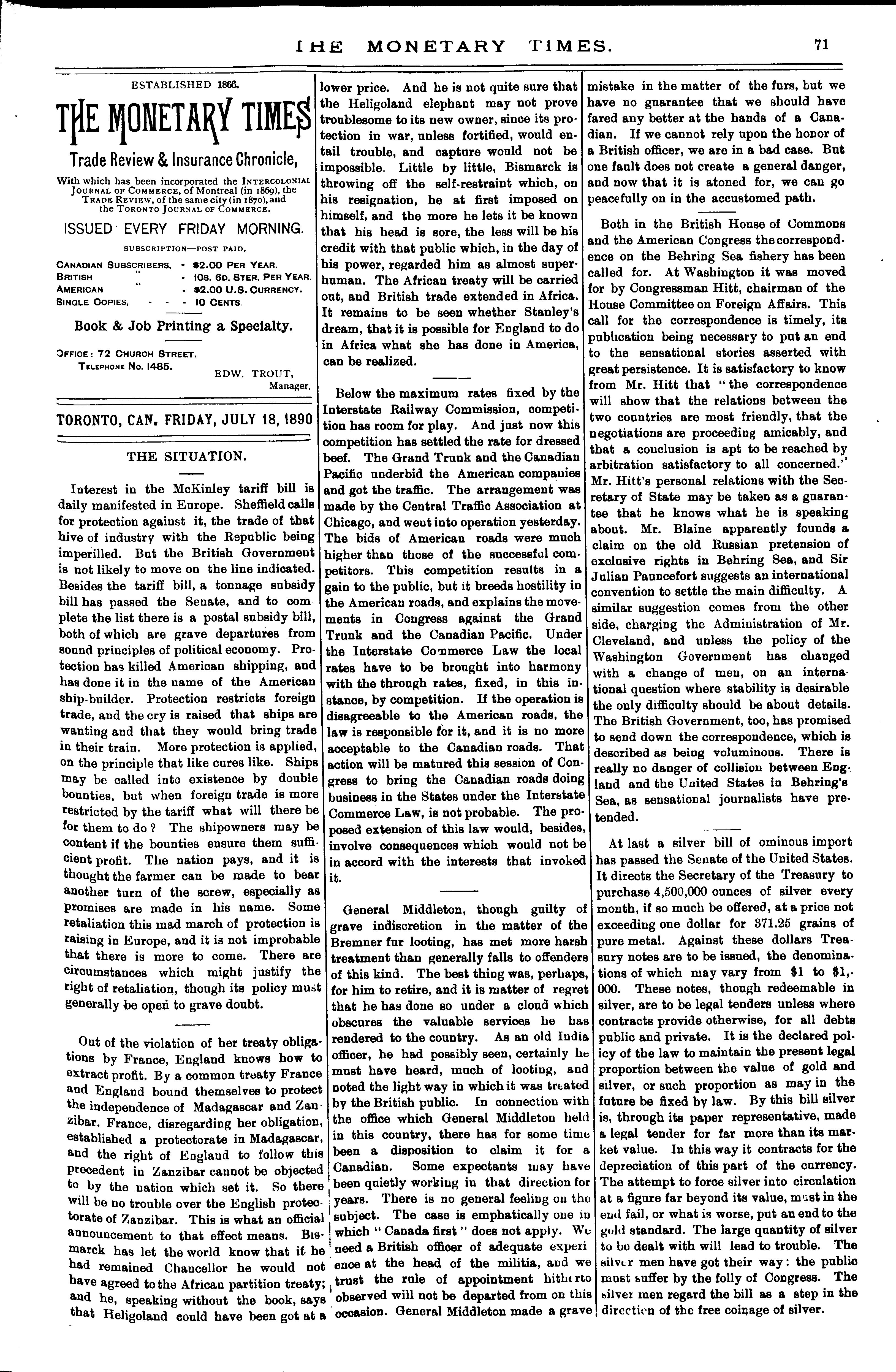 The monetary times, trade review and insurance chronicle : [Vol. 24, no. 3 (July 18, 1890)]