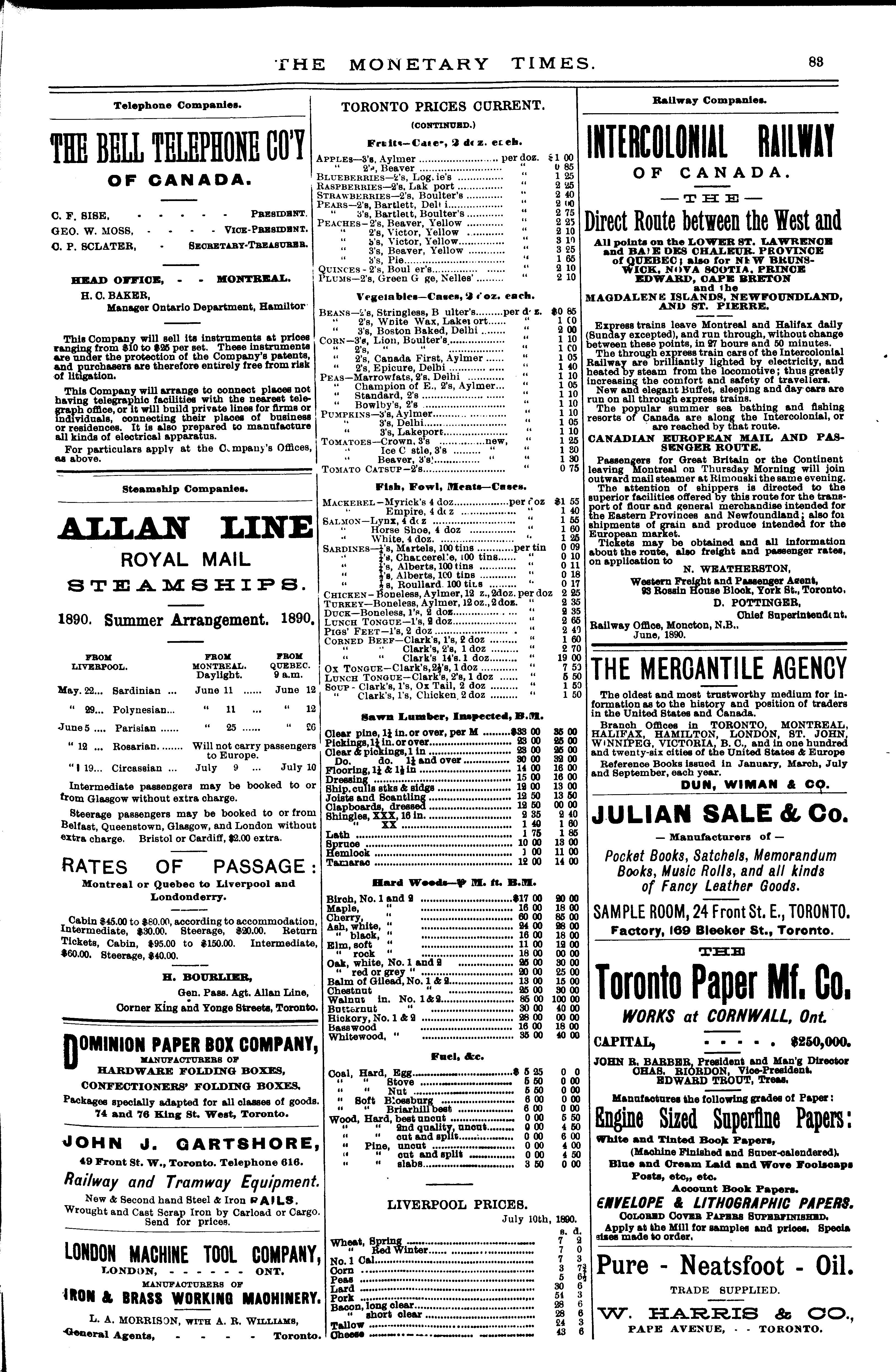 The monetary times, trade review and insurance chronicle : [Vol. 24, no. 3 (July 18, 1890)]