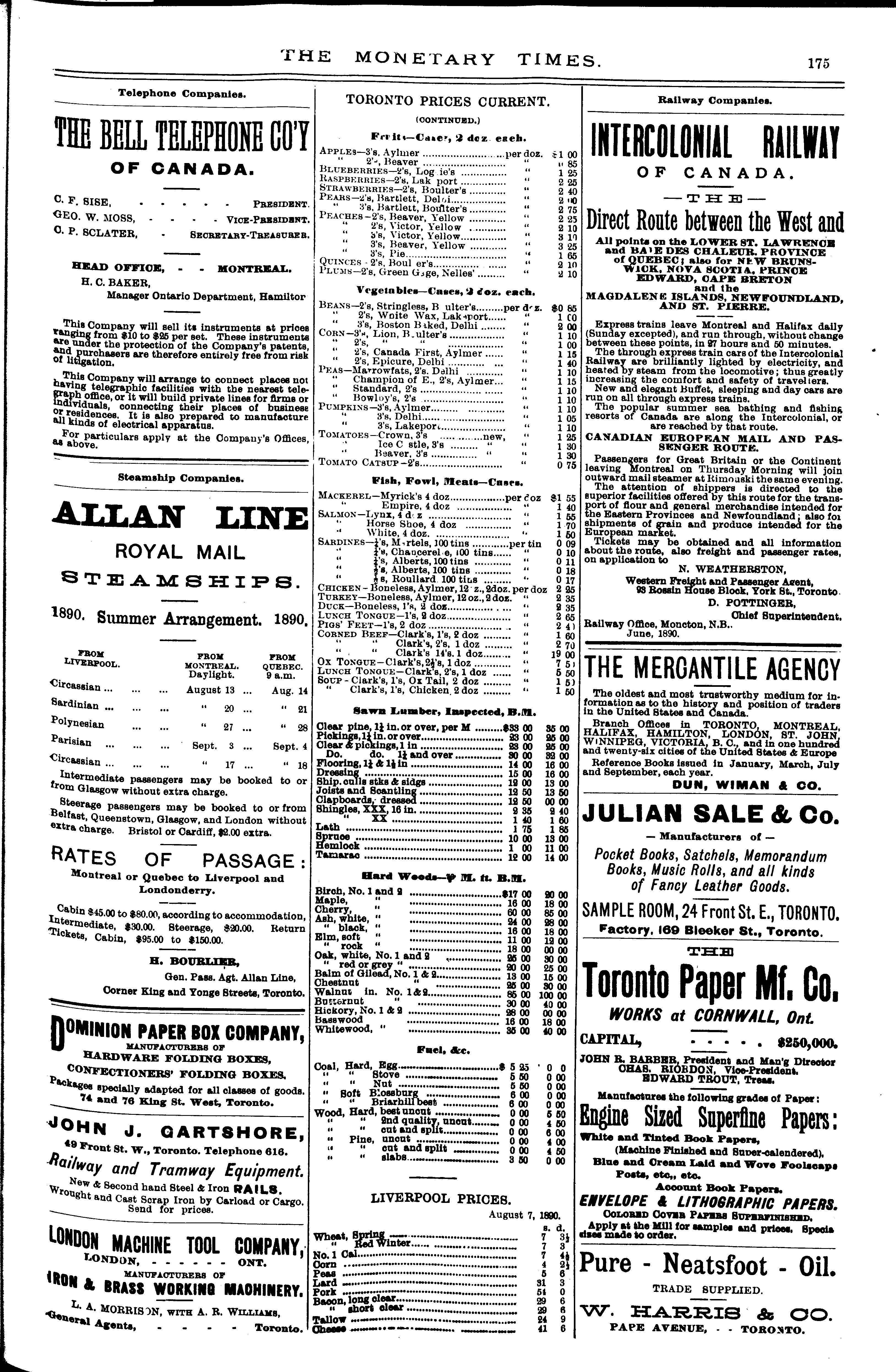 The monetary times, trade review and insurance chronicle : [Vol. 24, no. 6 (Aug. 8, 1890)]