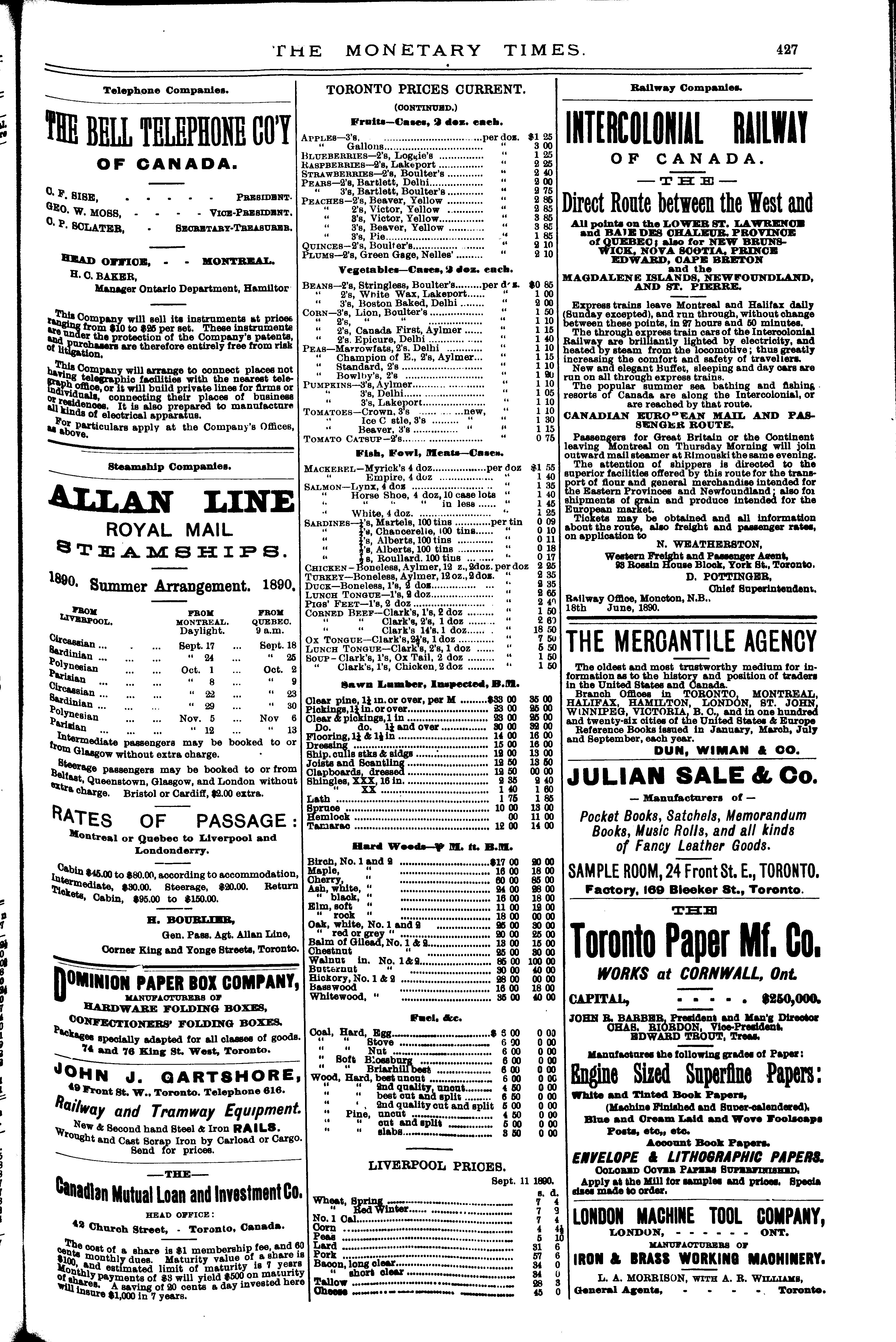 The monetary times, trade review and insurance chronicle : [Vol. 24, no. 15 (Oct. 10, 1890)]