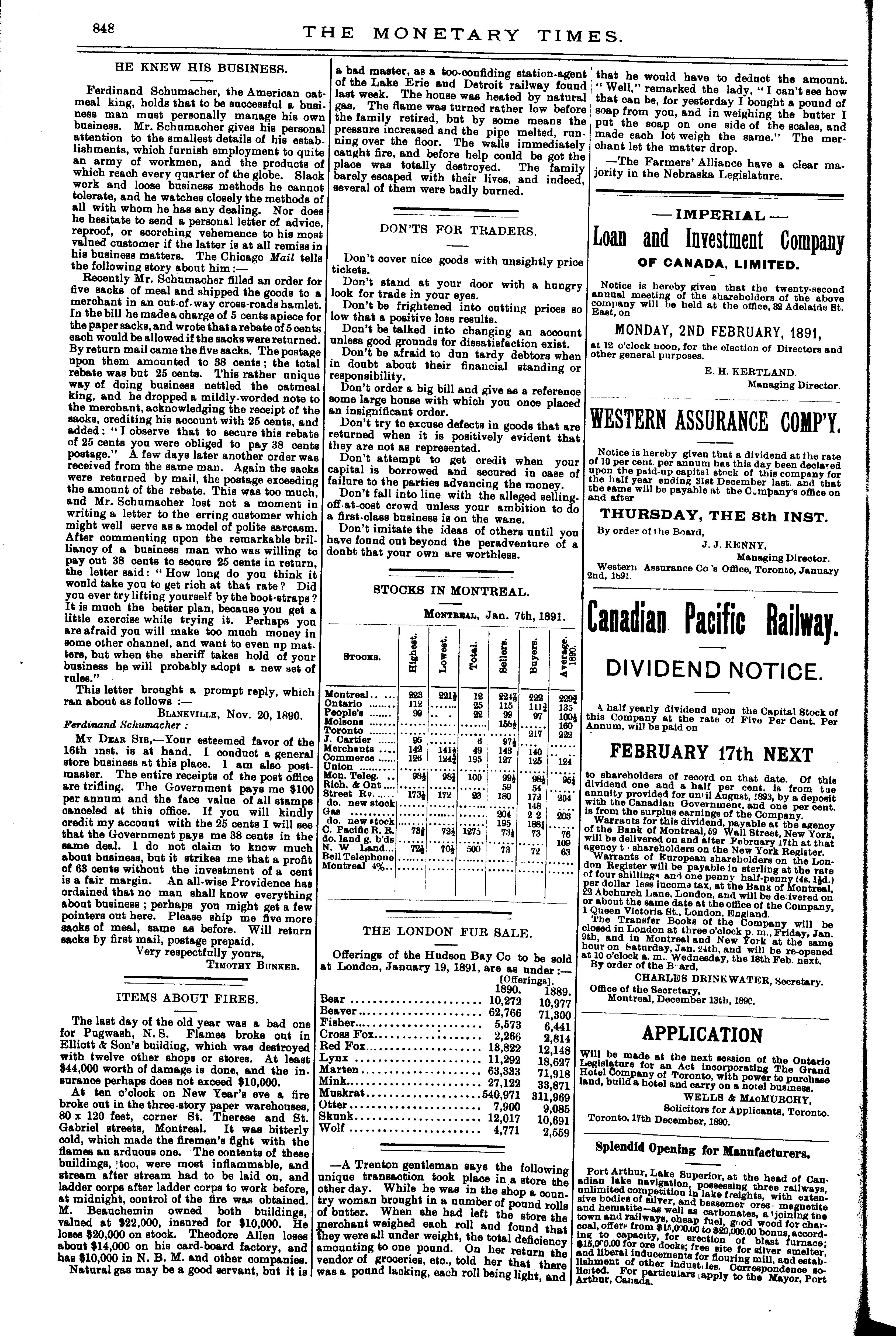 The monetary times, trade review and insurance chronicle [Vol. 24, no. 28 (Jan. 9, 1891)]