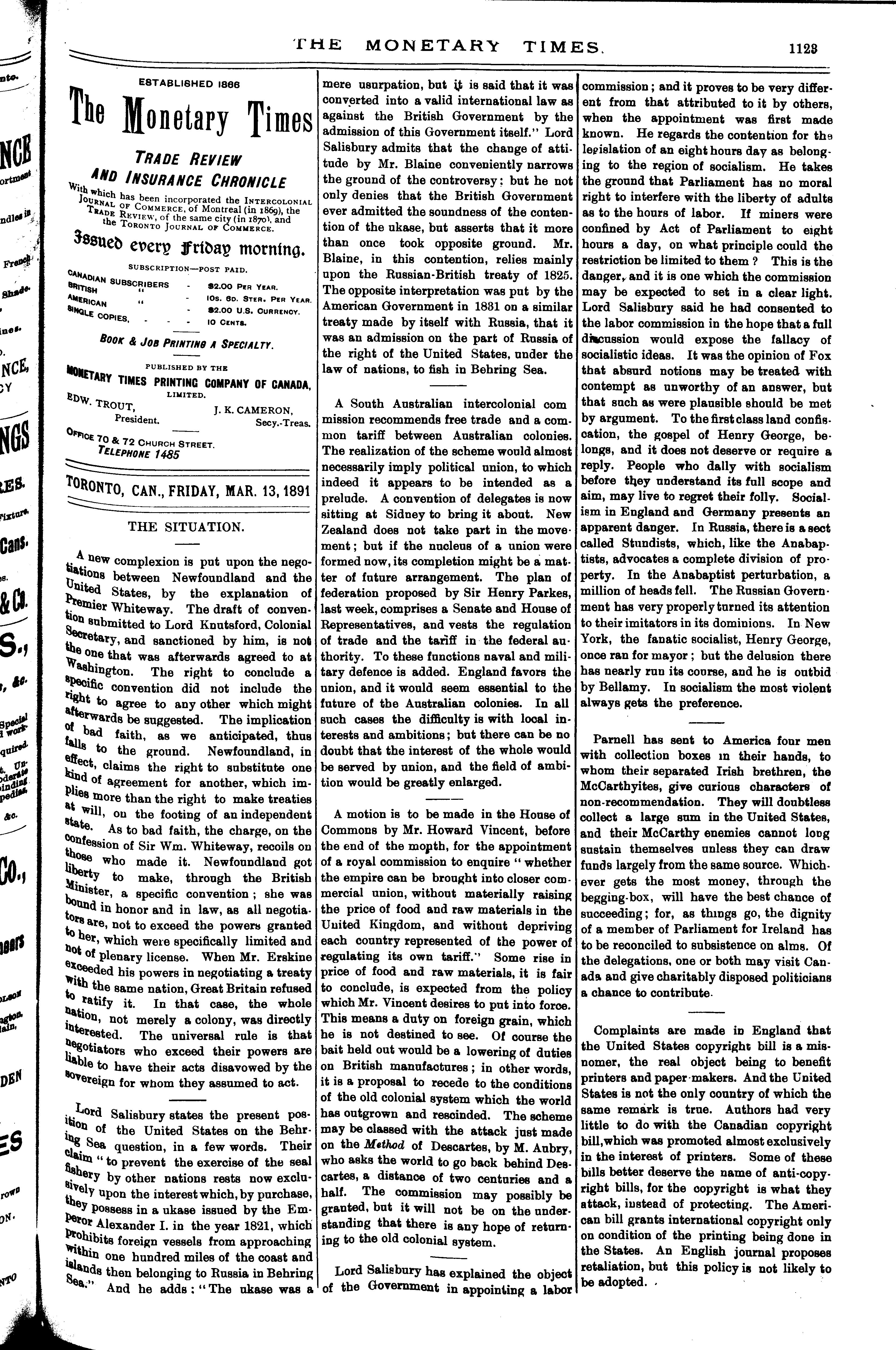 The monetary times, trade review and insurance chronicle [Vol. 24, no. 37 (Mar. 13, 1891)]