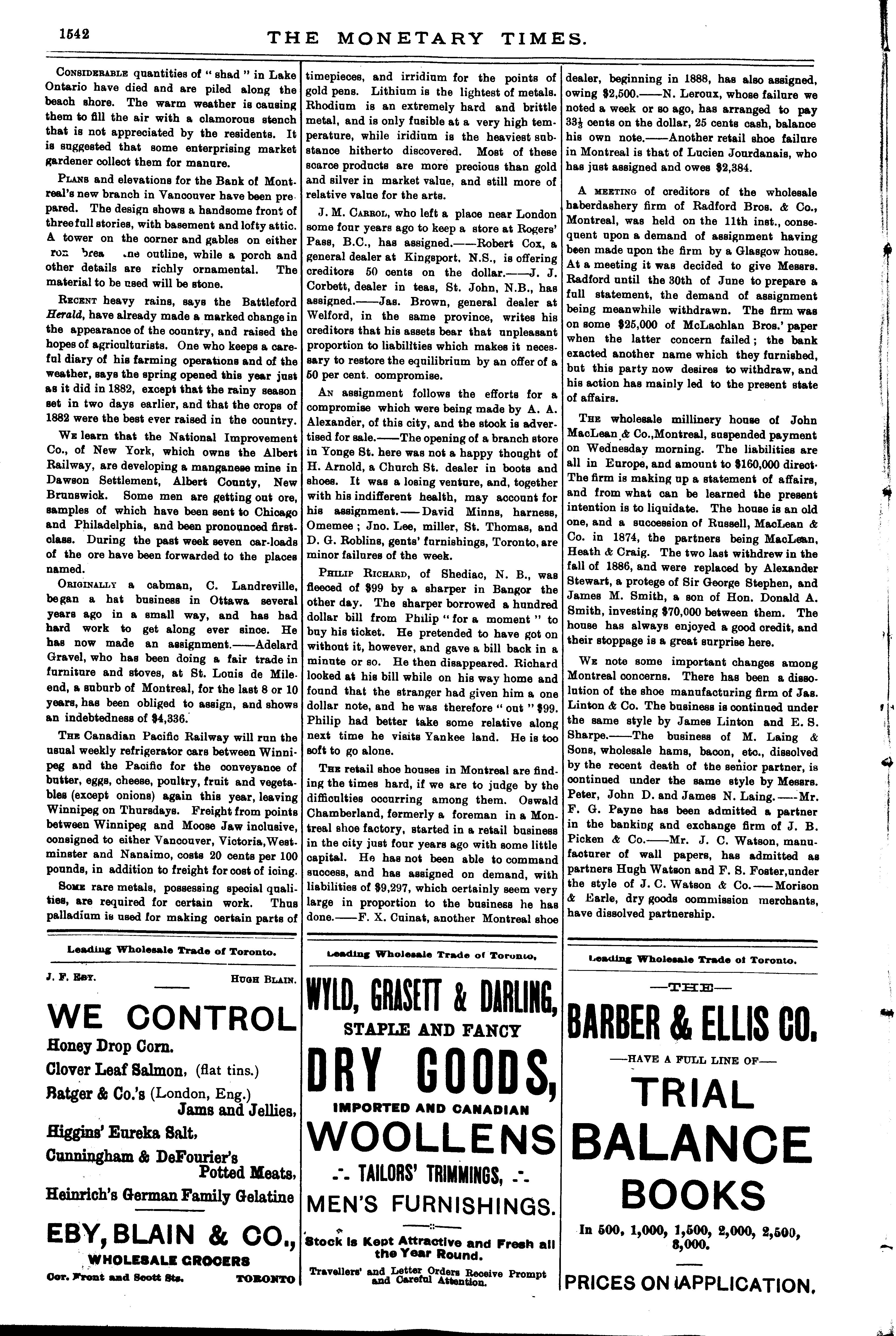 The monetary times, trade review and insurance chronicle : [Vol. 24, no. 51 (June 19, 1891)]