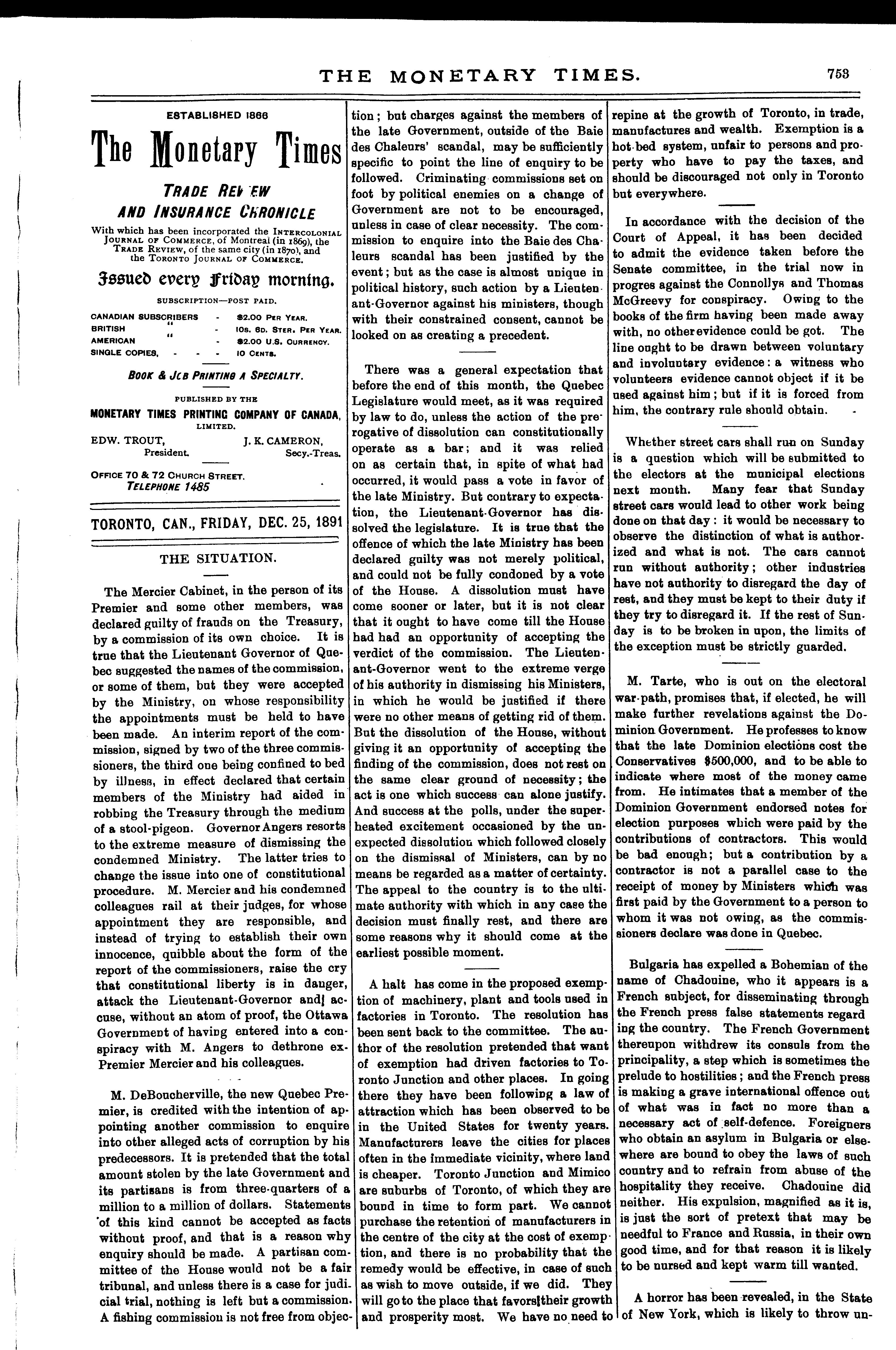 The monetary times, trade review and insurance chronicle : [Vol. 25, no. 26 (Dec. 25, 1891)]